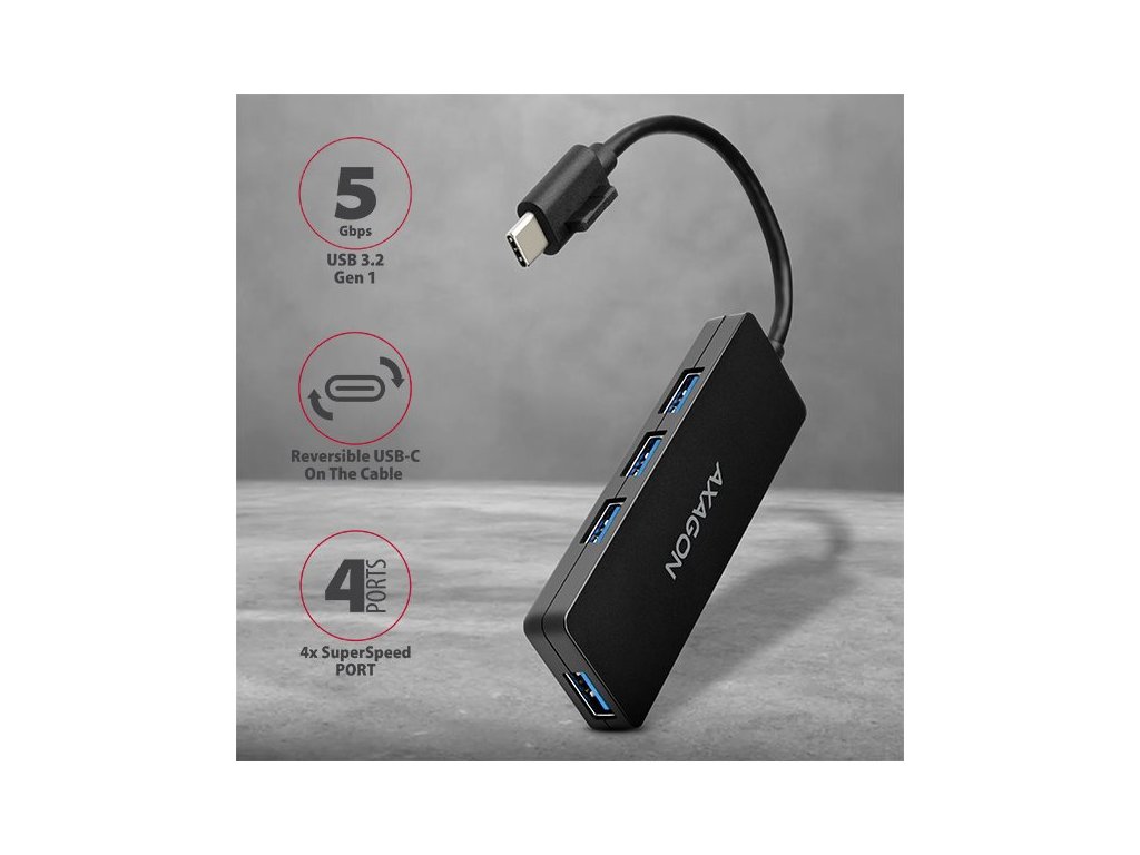 AXAGON HUE-G1C, 4x USB 3.2 Gen 1 SLIM hub, kábel USB-C