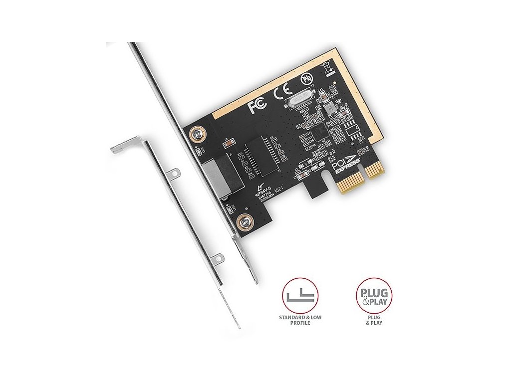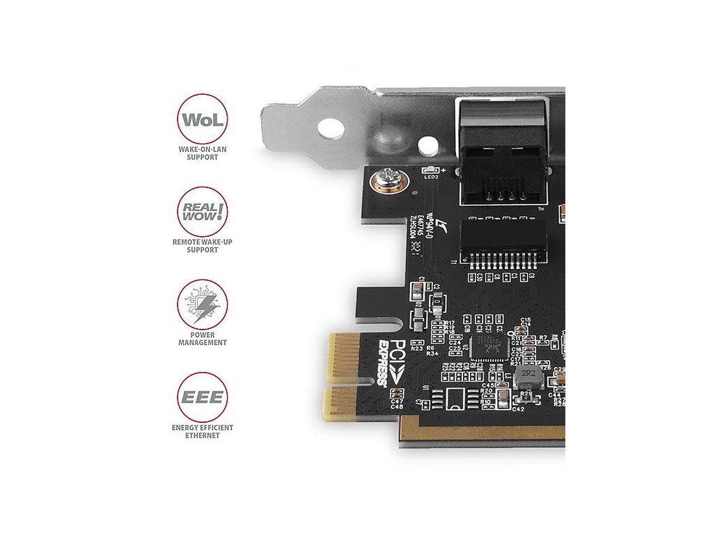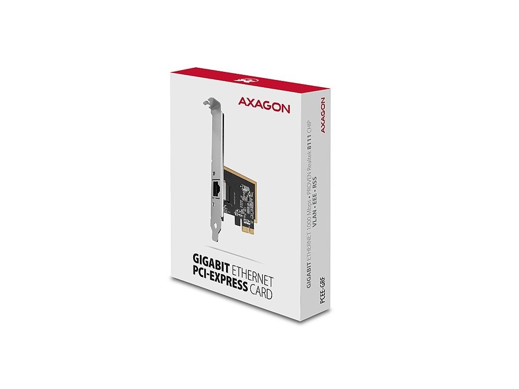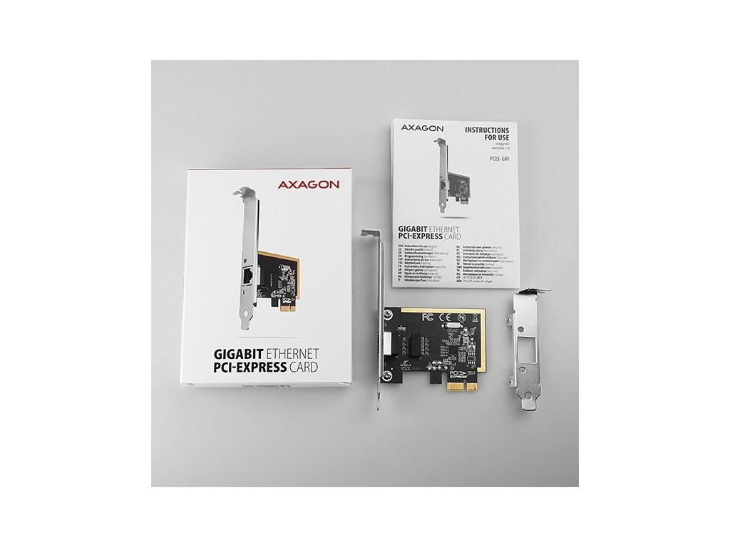 AXAGON PCEE-GRF, sieťová karta PCIe - 1x Gigabit Ethernet port (RJ-45), Realtek 8111F, vrátane. LP