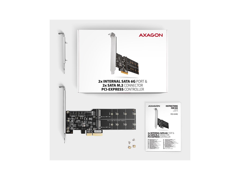 AXAGON PCES-SA4M2, radič PCIe - 2x interný port SATA 6G + 2x slot SATA M.2, ASM1164, SP a LP