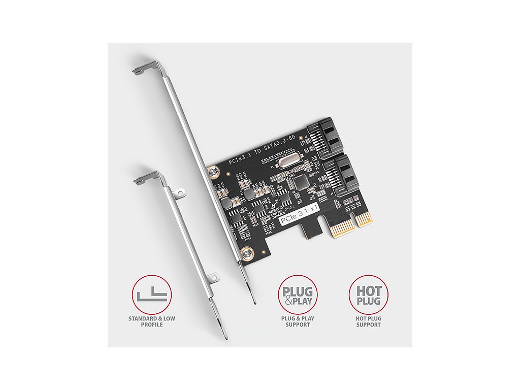 Radič 2x SATA 6G PCES-SJ2 PCIe Radič AXAGON PCES-SJ2 PCI-Express rozšíri váš stolný počítač o dva porty SATA s prenosovou rýchlosťou až 6 Gb/s. Karta je vybavená čipovou sadou JMicron a ponúka podporu nielen špecifikácie SATA 3.0, ale aj ďalších technológií SATA, ako sú Hot-Plug, Native Command Queue (NCQ), TRIM alebo Port Multiplier. Jednoduchá inštalácia bez nutnosti inštalácie ovládačov vo väčšine operačných systémov. Vďaka dodávanému nízkoprofilovému konektoru možno radič namontovať do štandardných aj nízkoprofilových počítačových skríň. Vstup: - Rozhranie PCI-Express 3.0, kompatibilné s PCI-Express 1.0a / 1.1 / 2.0 /2.1. - 1-Lane (x1), kompatibilný so sloty PCIe x1 / x4 / x8 / x16. - 1-pásmová sběrnica PCI-Express 3.0 s priepustnosťou 2 GB/s obousmerne. Výstup: - 2x nezávislý port Serial ATA, štandard SATA III 6G. - 2x interný 7-pinový dátový konektor SATA. - Podpora všetkých optických jednotiek SATA I/SATA II/SATA III, diskov SSD a pevných diskov všetkých kapacit. Ďalšie funkcie: - Plná podpora Plug and Play. - Kompatibilný so špecifikáciou Serial ATA 3.0 (SATA/600), prenosová rýchlosť až 6 Gb/s (600 MB/s). - Kompatibilný so špecifikáciou Serial ATA 2.0 (SATA/300), prenosovej rýchlosti do 3 Gb/s (300 MB/s). - Spĺňa špecifikáciu Serial ATA 1.0 (SATA/150), prenosové rýchlosti do 1,5 Gb/s (150 MB/s). - Vyhovuje špecifikácii Serial ATA AHCI (Advanced Host Controller Interface). - Podpora Hot Plug umožňujúca pripájanie a odpájanie zariadení SATA za chodu. - Podpora funkcie NCQ (Native Command Queuing). - Podpora TRIM pre disky SSD. - Podpora prepínania na základe príkazov Port Multiplier. - Podpora zavádzania systému z pripojeného disku vrátane spolupráce systému BIOS/UEFI so základnou deskou. - Použitá čipová súprava Jmicron JMB582. Podporované operačné systémy: - MS Windows 7/8/8.1/10/11 a novšie, Windows Server 2008/2012/2016/2019/2022 a novšie (podporované všetky 32- a 64-bitové verzie OS Windows), Linux s jadrom. Balené v kartónovej krabici, ktorá obsahuje: - PCI-Express radič so štandardným konektorom, - nízkoprofilovú záslepku, - viacjazyčný manuál SK/DE/DK/ENG/ESP/FIN/FR/GR/HR/HU/IT/NL/PL/PT/RO/RU/SK/SWE/TR/BG/CN/ARA.Dodatočné parametre