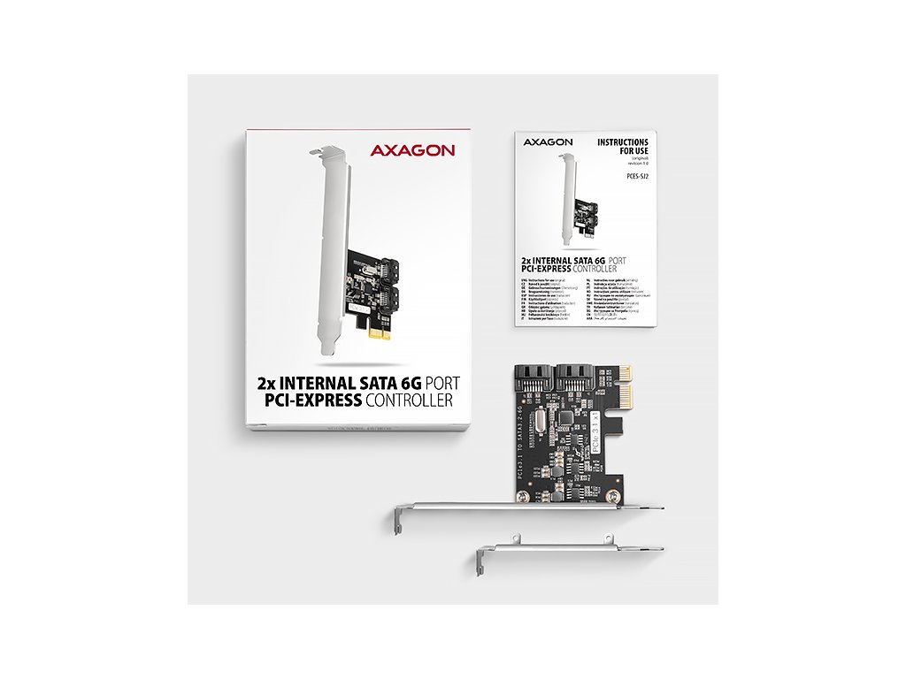 AXAGON PCES-SJ2, radič PCIe - 2x interný port SATA 6G, JMB582, SP a LP