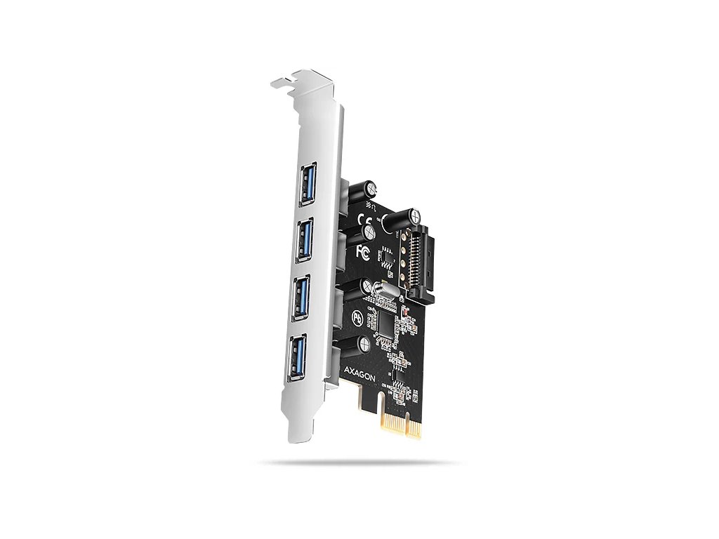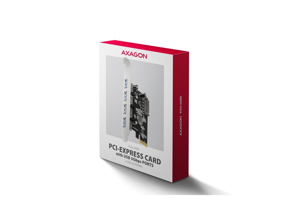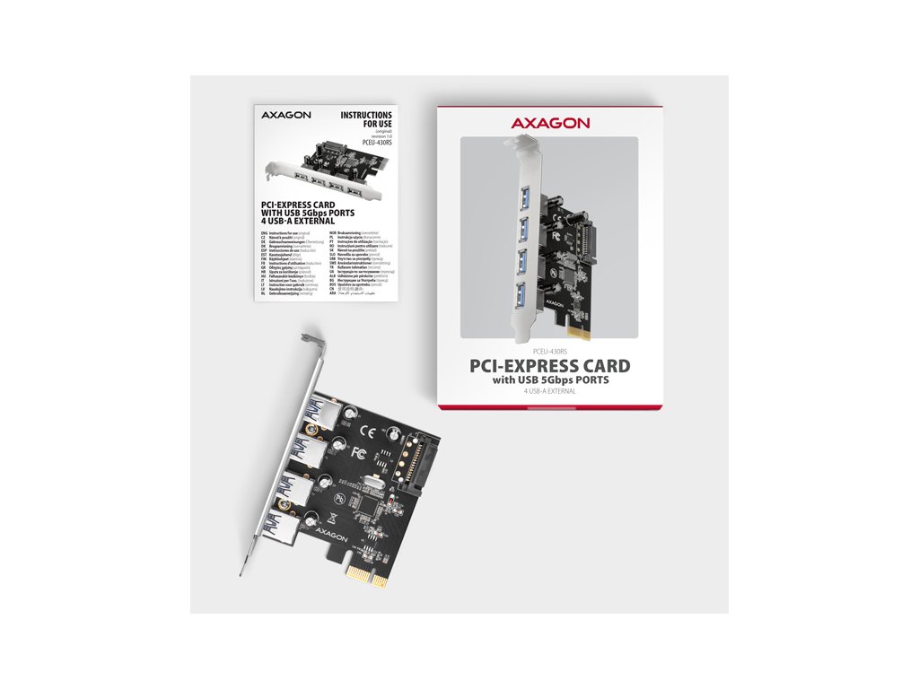 AXAGON PCEU-430RS, radič PCIe, 4x port USB 5Gbps, napájanie SATA, Renesas PD720201, SP