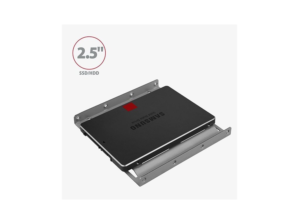 Kovový rám AXAGON RHD-125S umožňuje montáž 2,5 "HDD alebo SSD do 3,5" PC skrine. Táto jednoduchá redukcia elegantne rieši problém umiestnenia 2,5" HDD alebo SSD do štandardnej PC skrine. Možno použiť všetky disky SSD a HDD a neexistuje žiadne výškové obmedzenie. Presné otvory a dodávané skrutky zabezpečujú jednoduchú a bezproblémovú montáž rámčeka do počítačovej skrine. materiálu, ktorý je vhodný na použitie v domácnosti: Podporuje 2,5" SSD alebo HDD bez obmedzenia výšky - 7 mm, 9,5 mm, 12,5 mm, 15 mm atď. Rozmery rámu a montážne otvory zodpovedajú štandardnej pozícii 3,5" PC skrine Adaptér je vyrobený z ocelového plechu. 10 mm, hmotnosť 68 g. Balenie v kartónovej krabici s otvorom na zavesenie obsahuje: Rám pre 2,5" disk, skrutky a montážny materiál na upevnenie disku a rámčeka, viacjazyčný manuál SK/DE/DK/ENG/ESP/FIN/FR/GR/HR/HU/IT/NL/PL/PT/RO/RU/RU/RU/RU/Dodatočné parametre