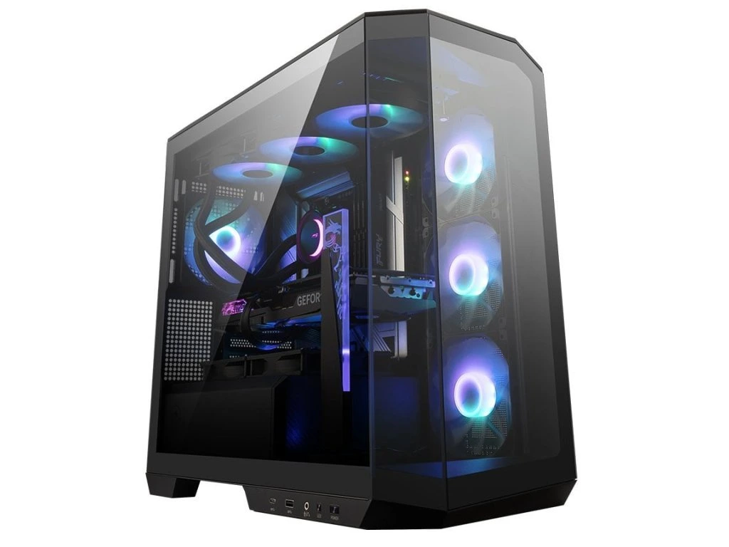 Skriňa MSI MAG PANO 100R PZ s panoramatickým sklom ponúka úchvatný pohľad na komponenty z dvoch strán. Čierny interiér je doplnený o 4× A-RGB ventilátor pre dokonalú hru svetiel.