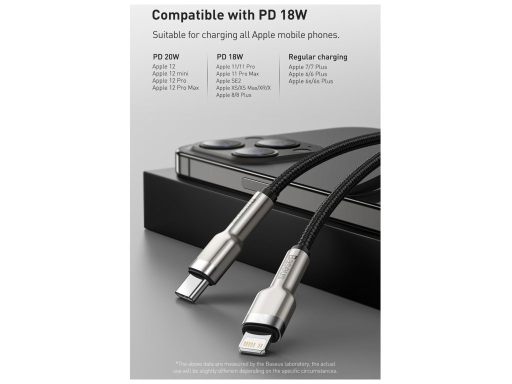 Baseus Cafule Series Nabíjací/dátový kábel USB-C na Lightning PD 20W 2m, biely