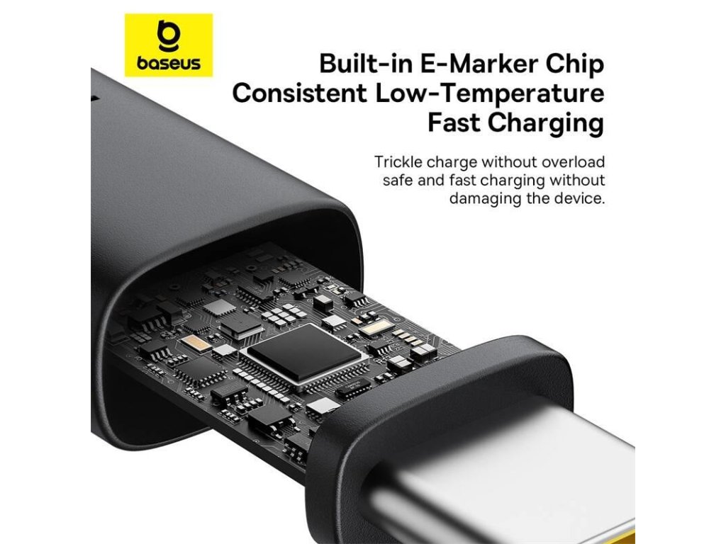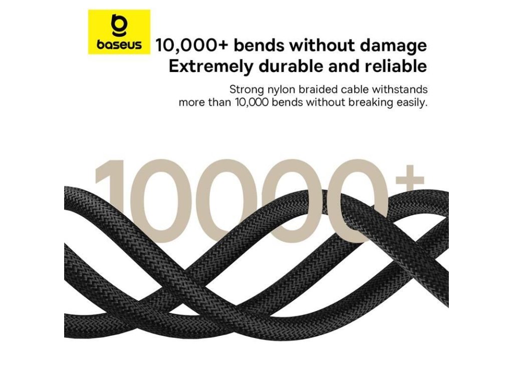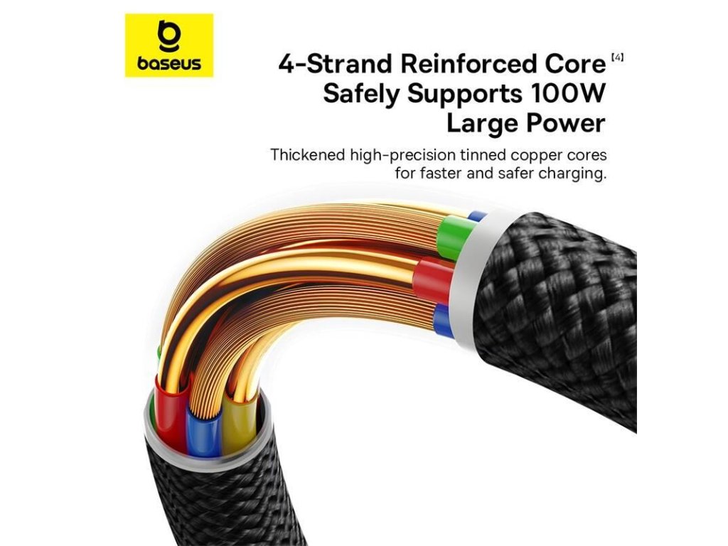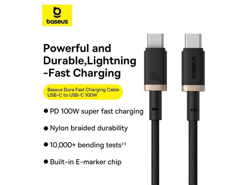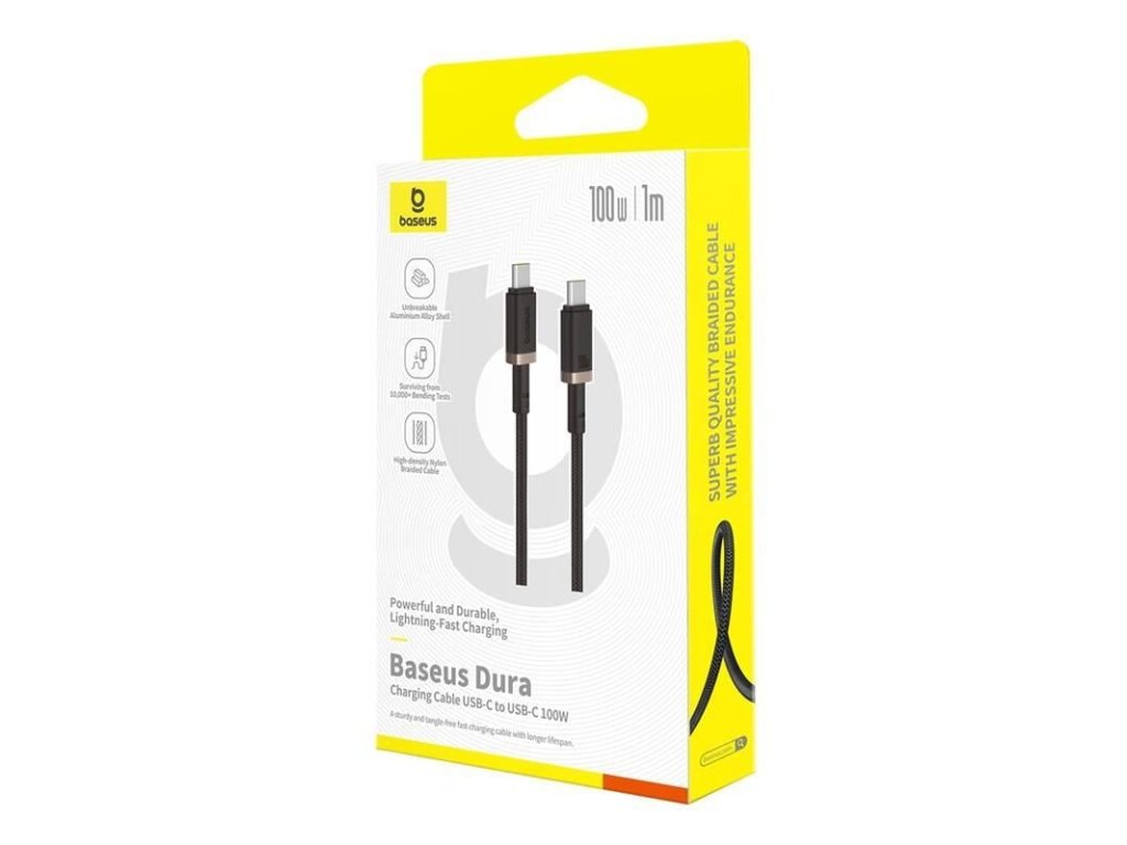 100W kábel Baseus Dura USB-C/USB-C je ideálnym riešením na extrémne rýchle nabíjanie a efektívny prenos dát. Vďaka podpore technológie Power Delivery (PD) umožňuje napájať širokú škálu zariadení vrátane notebookov, tabletov a smartfónov. Vďaka nylonovému opletu a zosilnenému jadru zo 4 vlákien je kábel extrémne odolný voči opotrebovaniu, roztrhnutiu a častému ohýbaniu. Prenosová rýchlosť 480 Mb/s navyše umožňuje rýchly a stabilný prenos súborov medzi zariadeniami. Inteligentný čip zabudovaný v kábli zabezpečuje bezpečné nabíjanie pri nízkých teplotách bez prehriatia, čím chráni vaše zariadenie aj samotný kábel. Testovanie odolnosti ukázalo, že kábel vydrží viac ako 10 000 ohnutí, vďaka čomu je spoľahlivým spoločníkom na každodenné používanie. Dĺžka 1 meter ponúka optimálnu rovnováhu medzi flexibilitou a praktičnosťou, či už ho používate doma, v kancelárii alebo na cestách. PD 100 W rýchle nabíjanie pre bleskový prenos energie Nylonový opletený kábel pre vysokú odolnosť proti opotrebovaniu Viac ako 10 000 testov ohybu pre maximálnu životnosť kábla Inteligentný čip na bezpečné nabíjanie pri nízkých teplotách Vystužené 4-vláknové jadro pre stabilný a bezpečný prenos energie Materiál zo sliatiny hliníka a nylonu pre pevnosť a odolnosť Z konektora USB-CDodatočné parametre