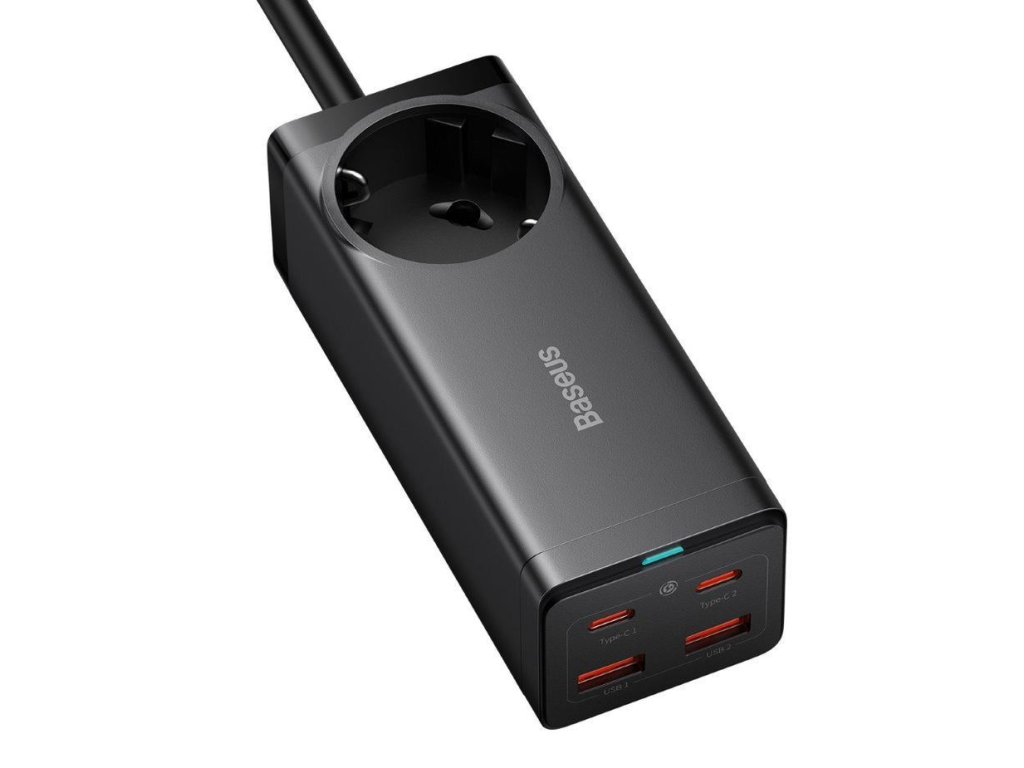 Baseus GaN3 Pro rýchlonabíjací stolný adaptér 2x USB-C + 2x USB-A + AC 100W 1,5 m kábel čierny