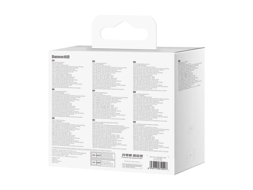 GaN5 Pro je nová generácia vysoko výkonných nabíjačiek založených na polovodičoch z nitridu gália GaN. Vďaka použitiu nových materiálov sa znížila hmotnosť a veľkosť nabíjačky bez toho, aby sa znížil jej výkon. nabíjačka má dva porty: USB-A a USB-C. Jej celkový výstupný výkon je 65 W. Podporuje štandardy rýchleho nabíjania vrátane tých najpopulárnejších: Power Delivery, Quick Charge QC4.0+, AFC (Samsung). Je navrhnutý tak, aby fungoval s väčšinou populárnych zariadení napájaných cez USB, ako sú tablety, iPhony, telefóny so systémom Android, notebooky atď. technológia BPSII ponúka inteligentnú a dynamickú distribuciu energie počas nabíjania a umožňuje súčasné rýchle nabíjanie pomocou dvoch portov. Technológia chladenia BCT ponúka rýchly odvod tepla, čo vedie k rýchlemu nabíjaniu bez zahrievania nabíjačky. nabíjačka je vybavená množstvom bezpečnostných prvkov. Ďalšou výhodou je, že ju možno používať skutočne na celom svete - pripája sa do všetkých zásuviek 100-240 V. Súčasťou balenia je 100W kábel USB-C na USB-C s dĺžkou 1 meter. Parametre: Názov: Baseus GaN5 Pre Fast Charger 2C+U 65W EU Black (Vrátane: Baseus Xiaobai series Fast Charging Cable C-Type Type-C 100W(20V/5A) 1m Black) Farba: čierna Rozmery: 98mm32mm37mm ; Hmotnosť: približne 121g Vstupné napätie: AC 100-240 V, 50/60 Hz, max. 1,5 A Výstupné napätie: USB-C1/USB-C2: 9V/3A, 12V/3A, 20V/3A USB-C1 + USB-C2: 45W + 20WDodatočné parametre