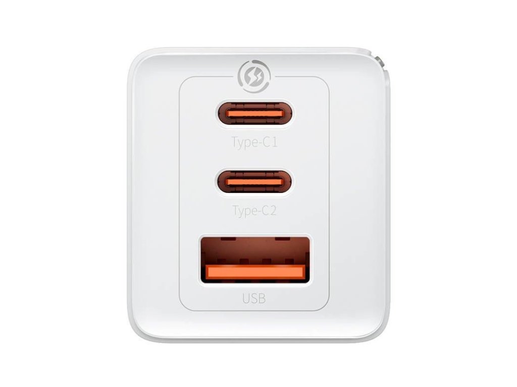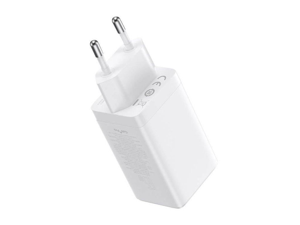 Baseus GaN5 Pro rýchlonabíjací adaptér 2x USB-C + USB-A 65W biely