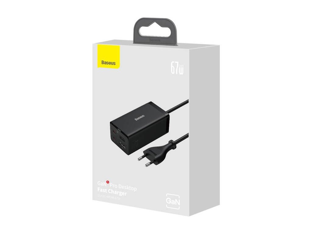 Baseus GaN5 Pro rýchlonabíjací stolný adaptér 2x USB-C + USB-A + HDMI 67W 1,5 m kábel čierny