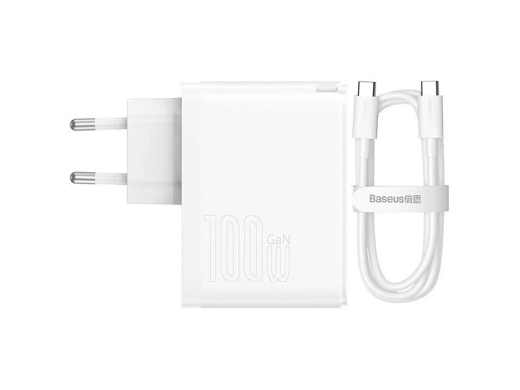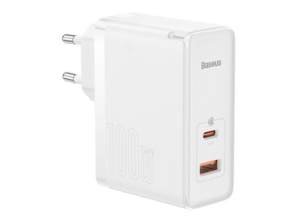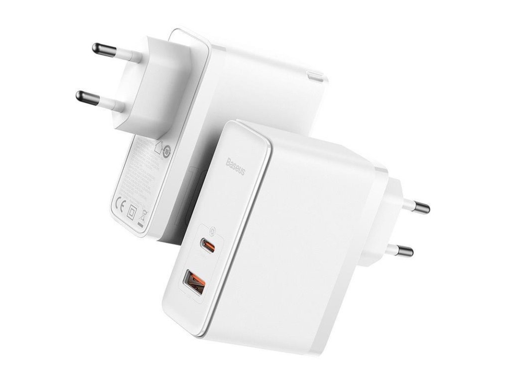 Baseus GaN5 Pro USB-C USB-A 100W rýchlonabíjací adaptér biely