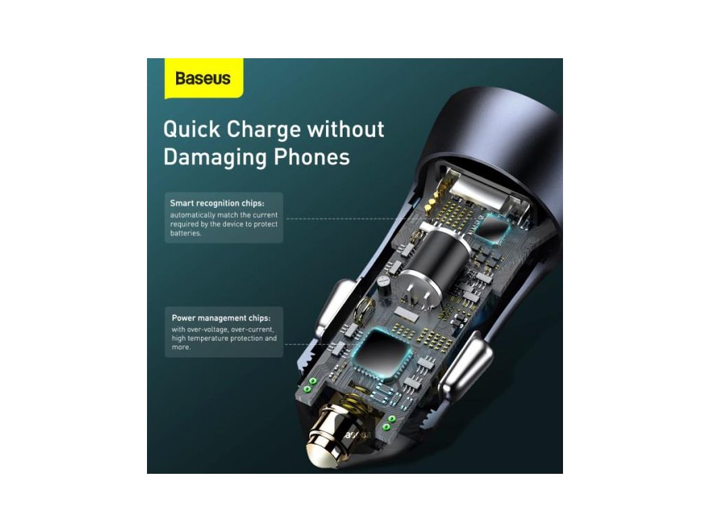 Rýchle nabíjanie Autonabíjačka Baseus podporuje 3 protokoly rýchleho nabíjania. Qualcomm Quick Charge 3.0 nabije vaše zariadenie štyrikrát rýchlejšie ako štandardná nabíjačka. Navyše spätná kompatibilita Quick Charge 3.0, 2.0, AFC, MTK zaručuje najrýchlejšiu možnosť nabíjania. Medzi telefóny kompatibilné s QC patrí Xiaomi 10/9. Protokol Huawei Fast Charge urýchľuje nabíjanie zariadenia a počas nabíjania sa nezhoršuje. Medzi kompatibilné telefóny patrí Huawei Mate 30 alebo Honor Magic 2. Podobne ako Huawei, aj Samsung má svoj vlastný protokol rýchleho nabíjania. S funkciou Samsung Adaptive Charge sa telefón nabíja oveľa rýchlejšie ako s bežnou nabíjačkou. Technológia spoločnosti Samsung nabíja modely ako S20, S9 atď. Odolný materiál Vďaka telu vyrobenému z odolných materiálov PC a ABS je nabíjačka odolná voči poškriabaniu. Kov s rýchlou tepelnou vodivosťou pomáha nabíjačke udržiavať nízku teplotu, takže nabíjanie vášho zariadenia je bezpečné. Protismyková konštrukcia poskytuje stabilitu a bezpečnosť, takže vaše zariadenie sa bude nabíjať aj na nerovných cestách. Vďaka kompaktným rozmerom sa zariadenie dokonale hodí do väčšiny zapaľovačov. LED podsvietenie dodáva jedinečný vzhľad a umožňuje rýchlo nájsť nabíjačku po zotmení. Priložený 5A kábel USB-C navyše podporuje protokoly rýchleho nabíjania, ako je Qualcomm Quick Charge 3.0, Huawei Fast Charge Protocol a Samsung Adaptive Charge. Okrem toho je vyrobený z odolných materiálov, takže ho môžete používať bezpečne a dlho. 7 úrovní zabezpečenia Nabíjačka Baseus prešla sériou bezpečnostných testov a získala niekoľko certifikátov, takže ju môžete používať bez obáv. Riadiaca čipová súprava prispôsobuje preud každému zariadeniu a chráni ho pred poškodením. Vďaka 7 úrovniam ochrany sú vaše zariadenie a nabíjačka chránené pred prebitím, nadmerným vybitím, prepätím, prehriatím, nadprúdom, skratom a elektromagnetickým polom. Materiál ABS (spomaľovač horenia) + hliník + PCDodatočné parametre