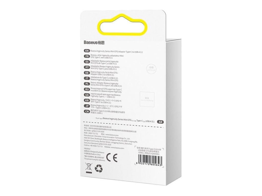 Baseus Ingenuity mini OTG adaptér USB-C samec na USB-A samica 3,1 A, čierny