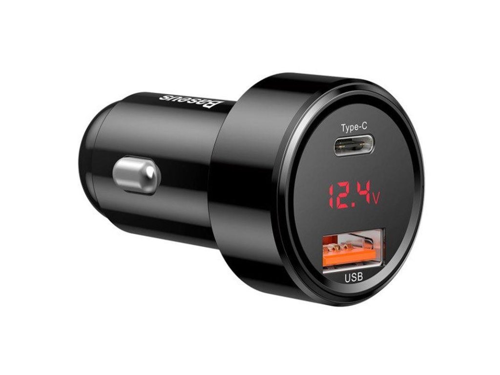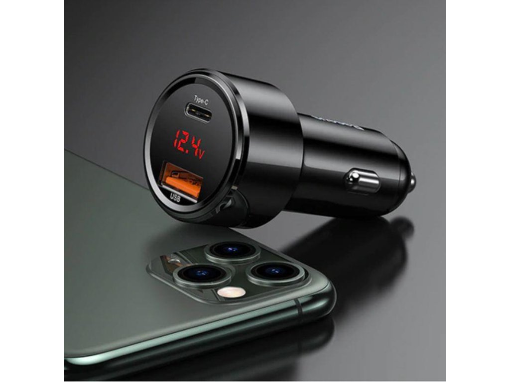 Baseus Magic USB-C PD, USB-A 45W nabíjačka do auta s displejom čierna