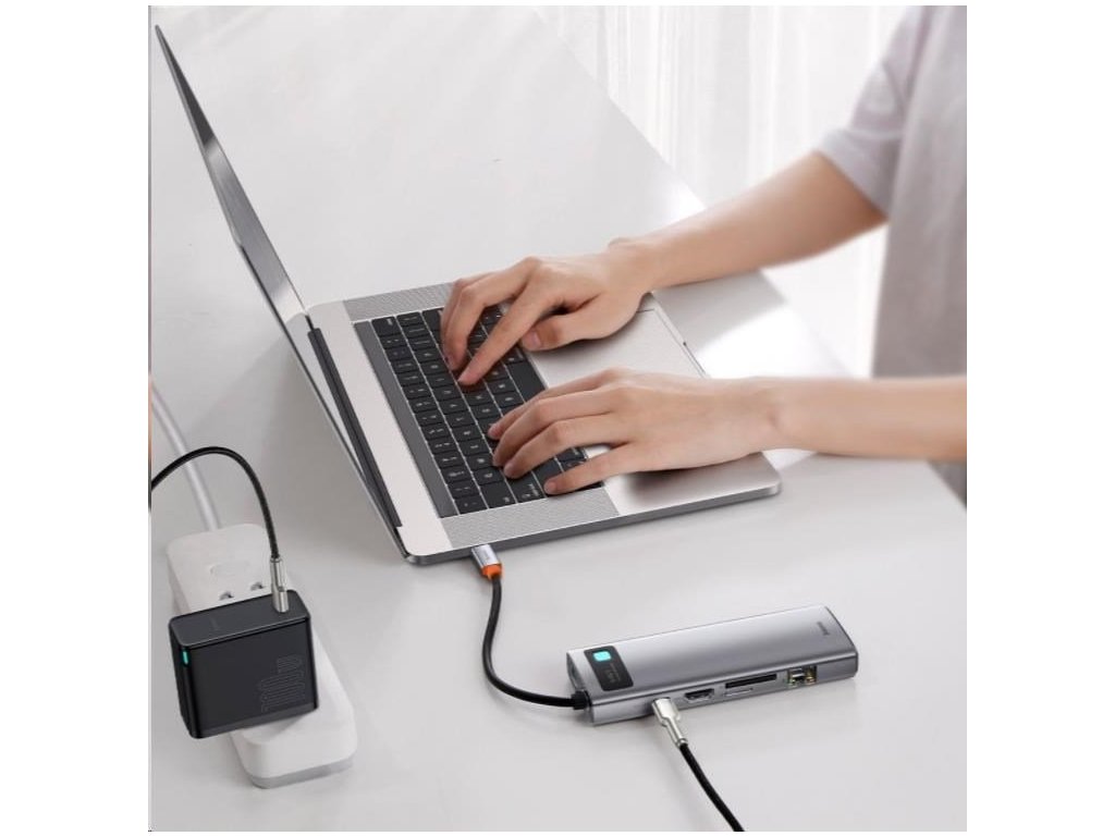 Váš notebook nemá dostatok portov? Chcete rozšíriť jeho možnosti? Je to jednoduchšie, ako sa zdá! Multifunkčný rozbočovač Baseus 9v1 obsahuje 3 porty USB 3.0, 1 USB-C, 1 HDMI, 1 VGA a 1 Ethernet. Má tiež sloty na karty SD a TF. Umožňuje rýchly prenos súborov rýchlosťou až 5 Gb/sa dokáže zobrazovať obraz v kvalite až 4K. Podporuje aj 100W rýchle PD nabíjanie na porte USB-C. Vyznačuje sa tiež neuveriteľne efektívnym odvodom tepla a širokou kompatibilitou. Zistíte, že sa oplatí využiť jeden počítačový port na získanie až 9 ďalších! Často prenášate súbory medzi zariadeniami? Neradi čakáte príliš dlho na prenos dať? Baseus vám pomôže vyriešiť tieto problémy! Porty USB 3.0 umožňujú prenášať fotografie, filmy alebo dokumenty rýchlosťou až 5 Gb/s. Teraz aj tie najväčšie súbory nájdu svoje miesto určenia v okamihu!Dodatočné parametre