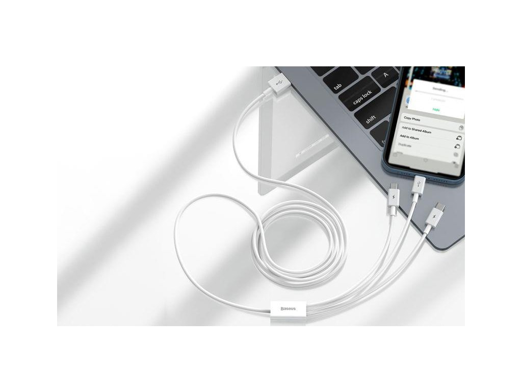 Baseus Superior 3v1 USB/microUSB, Lightning, USB-C 1,5 m 3,5 A biely dátový kábel