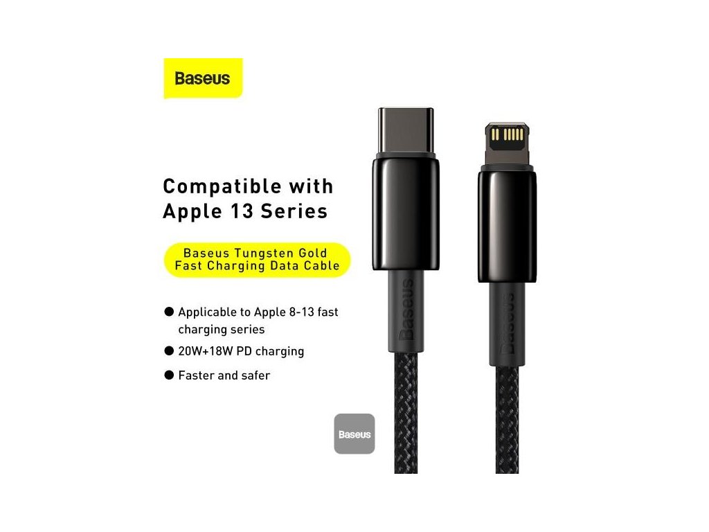 Baseus Tungsten Gold Rýchlonabíjací / dátový kábel USB-C na Lightning PD 20W 1m, čierny