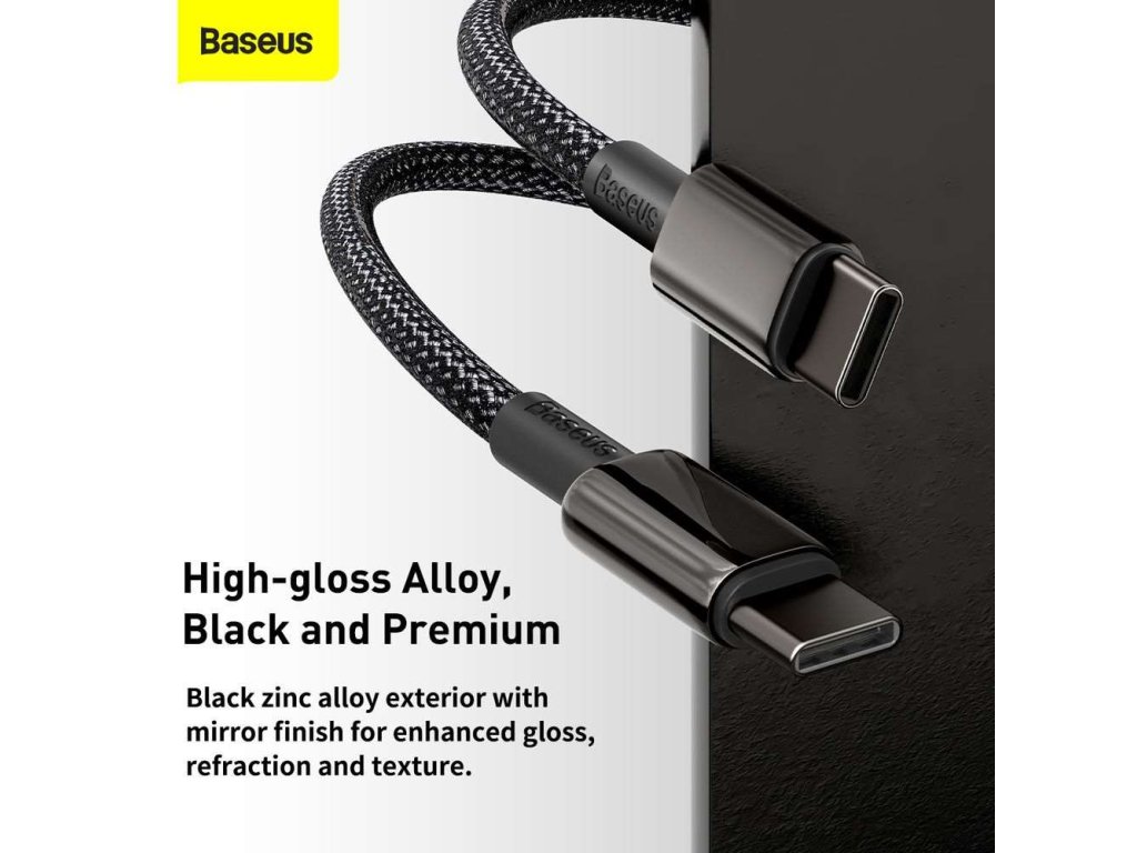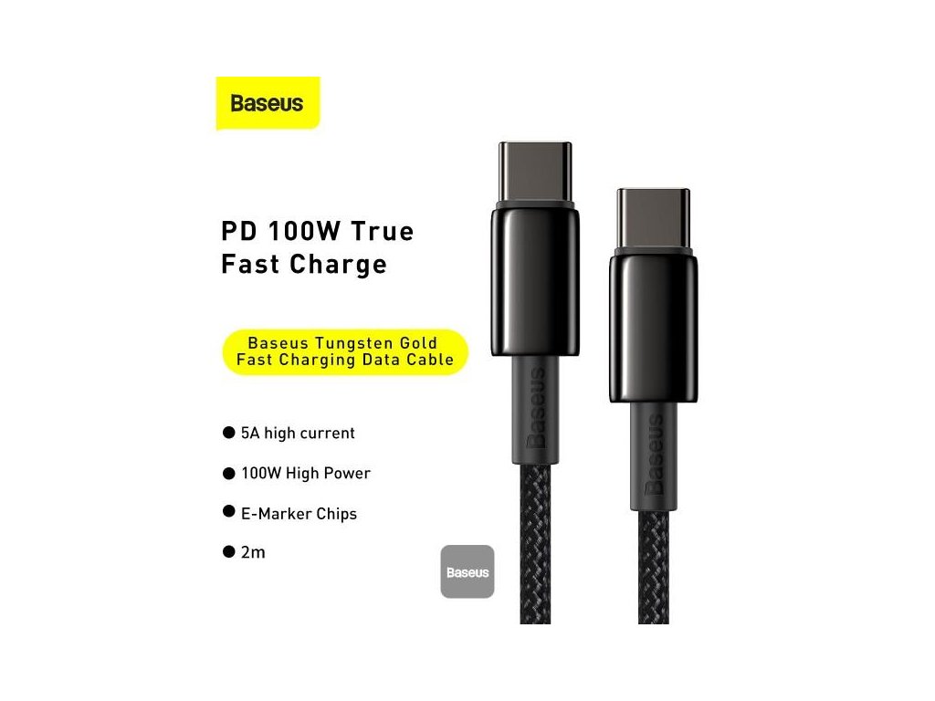 Baseus Tungsten Gold USB-C na USB-C 100W 2m rýchlonabíjací / dátový kábel, čierny