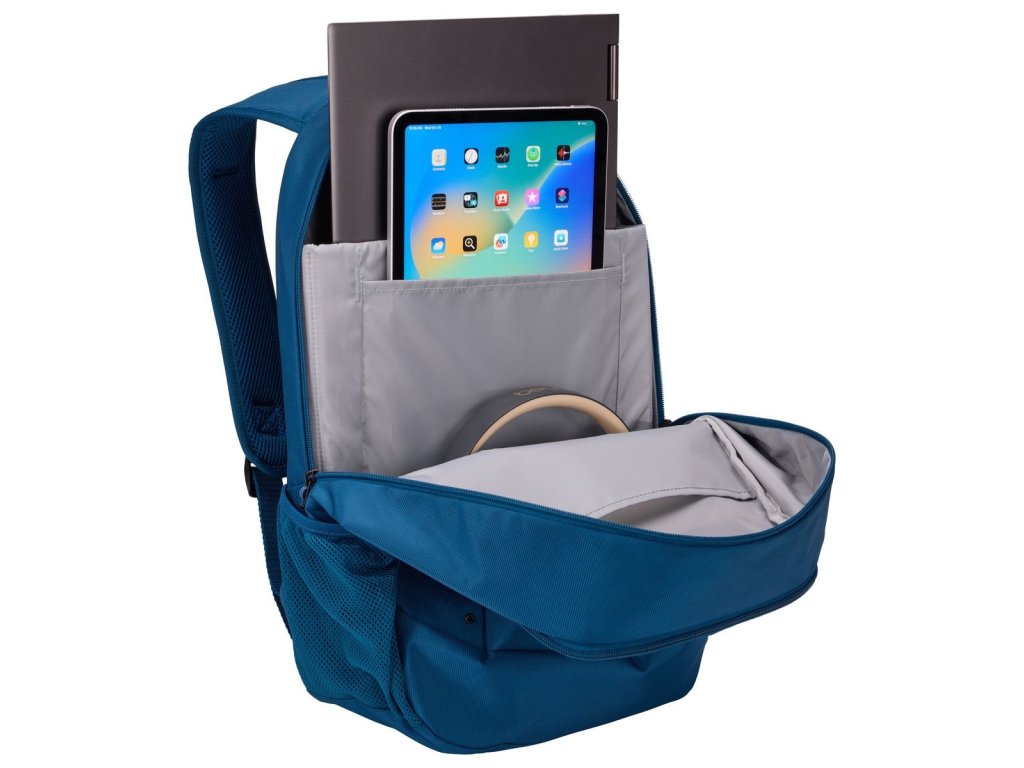 Elegantné riešenie pre tých, ktorí si chcú efektívne zabaliť elektroniku a veci dennej potreby. Integrovaná priehradka na 15,6" notebook a kapsa na tablet. Vyrobená zo 100% recyklovaného polyesteru a recyklovaného materiálu dobby. Do prednej kapsy s rýchlym prístupom môžete uložiť predmety, ako je telefón, cestovný lístok alebo balenie žuvačiek. malé káble. Láhev na vodu majte na dosah v praktických bočných sieťovaných kapsách.Dodatočné parametre