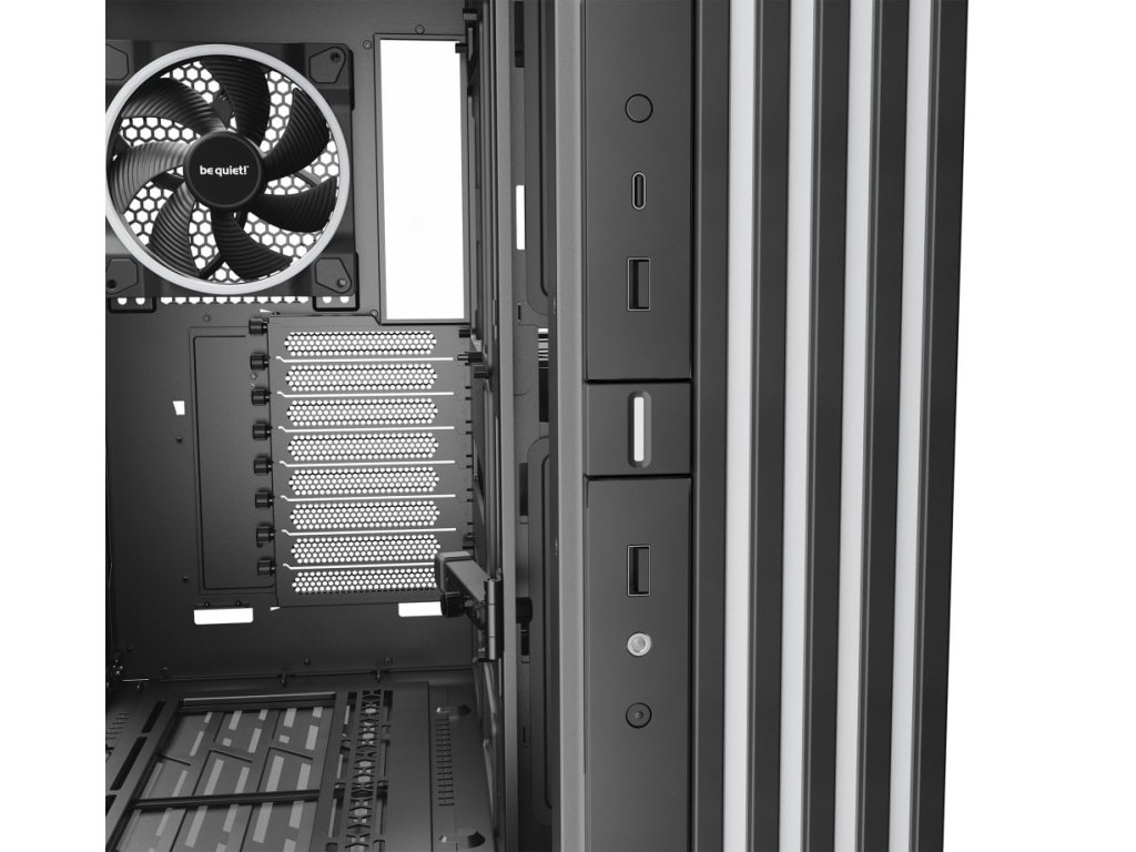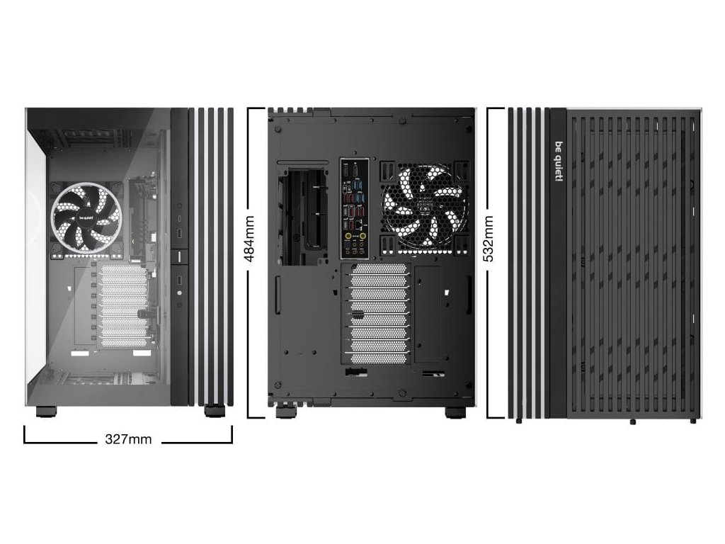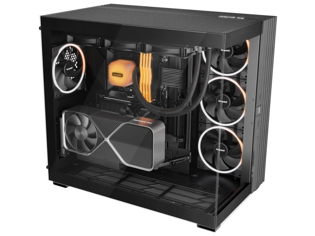 Další předností je podpora přemístitelných nožiček, díky čemuž můžete PC otočit a umístit ve svislé i vodorovné poloze. PC skříň Be quiet! LIGHT BASE 900FX je osazena 4 předinstalovanými ventilátory s ARGB posvícením. Light Wings ventilátory svým designem lopatek podporují optimalizované proudění vzduchu a snižují turbulence pro dosažení tichého provozu. Prostor uvnitř skříně vám umožní vytvořit rozmanité konfigurace s extrémně výkonnými grafickými kartami, radiátory nebo základními deskami ve formátu E-ATX, XL-ATX, ATX, Micro ATX, Mini-ITX.