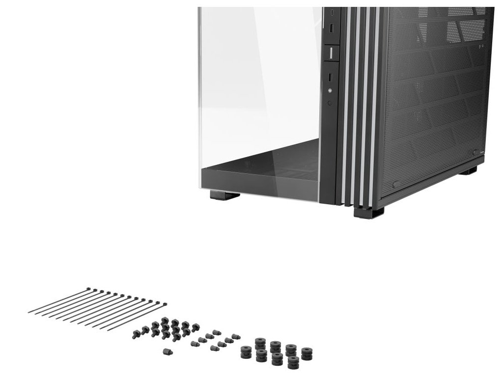 Unikátní počítačová skříň s průhlednou bočnicí i předním panelem formátu Middle Tower nabízí dostatek prostoru pro montáž většiny dostupných komponent. Hlavní předností této skříně je možnost rychlé změny její orientace díky systému odnímatelných a přemístitelných nožiček. Skříň je dodávána se čtyřmi předinstalovanými 140mm ventilátory s ARGB podsvícením. K tomu nabízí dalších až 6 pozic pro ventilátory a dva integrované rozbočovače ventilátorů a ARGB. Na předním panelu se nachází dva porty USB 3.0, jeden port USB-C, sluchátkový výstup a audio vstup pro mikrofon. Herní design ještě doplňuje elegantní ARGB osvětlení lemující strany skříně, díky čemuž je viditelné bez ohledu na to, v jaké orientaci skříň používáte. Ve skříni je dostatek prostoru pro chladič CPU do výšky až 190 mm a grafickou kartu o délce až 495 mm. Důmyslné řešení umožňuje pohodlné umístění až 420 mm dlouhého výměníku vodního chlazení na horní nebo spodní straně. Potěší také přítomnost prachových filtrů či integrovaná podpěra grafické karty. Skříň je dodávána bez zdroje.