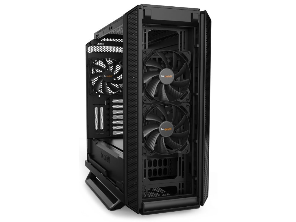 Buďte ticho! SILENT BASE 802 Okno Kvalitná počítačová skriňa formátu Middle Tower, ktorá na prvý pohľad zaujme priehľadnou bočnicou. Dokonale kombinuje vysoký stupeň modularity s absolútnou tichosťou. Je vybavená tromi prakticky nepočuteľnými ventilátormi, ktoré možno vďaka ovládaču prepínať medzi tichým alebo výkonným režimom. Poteší vás aj možnosť rozšírenia o ďalších päť ventilátorov. Na hornej strane sa nachádzajú dva porty USB 3.0, jeden port USB 2.0, výstup na sluchátka a vstup pre mikrofón. Podporuje montáž základných dosiek E-ATX, ATX, M-ATX a MINI-ITX. K dispozícii sú tri 3,5" pozície pre disky alebo až sedem 2,5" pozícií pre disky. Dômyselný dizajn umožňuje pohodlné umiestnenie až 420 mm dlhého výmenníka tepla vodného chladenia na prednej strane. Skriňa sa dodáva bez napájacieho zdroja. ZÁKLADNÉ ŠPECIFIKÁCIE Konštrukcia skrine: Stredná veža Vnútorné pozície: 7 x 2,5 "+ 3 x 3,5" Kompatibilita so základnými doskami: E-ATX, ATX, M-ATX, Mini-ITX Napájanie: bez zdroja 2 x USB 3.0, 1 x USB mikrofón, regulátor otáčok ventilátora Rozmery: 553 x 539 x 281 mm Hmotnosť: 13,15 kg Farba: čiernaDodatočné parametre