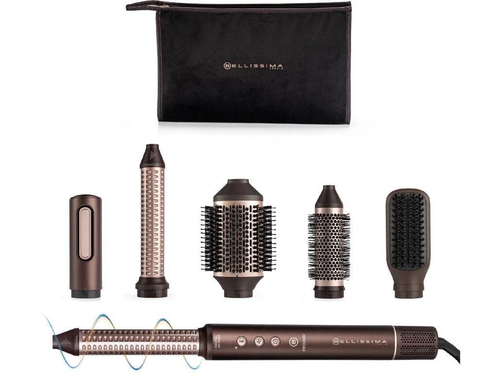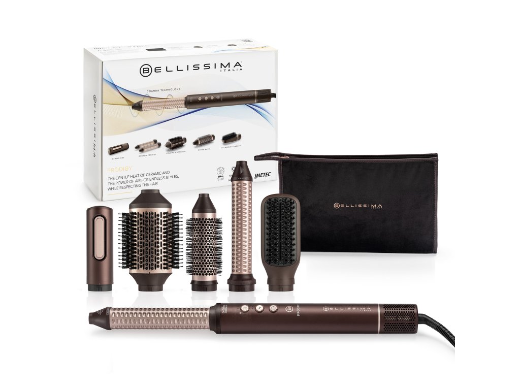 Teplovzdušný styler Bellissima 11956 PRODIGY s technológiou Coanda - revolučný teplovzdušný styler s keramickým povrchom, negatívnymi iónmi a infračerveným zářením - špičkový digitálny motor vytvára silný prúd vzduchu pre vysoký výkon sušenia a stylingu za kratší čas - 6 exkluzívnych stylingových doplnkov na rôzne typy alebo dodať objem od korienkov až po končeky - Výkon 1200 W - studený vzduch - 3 nastavenia teploty - 3 nastavenia rýchlosti - Súčasťou balenia je praktické pouzdro na uloženie výrobku a príslušenstva - ideálne na cesty - 3 m dlhý kábel - Ergonomický dizajn navrhnutý na jednoduché používanie - Elastická spona kábla BellissimaDodatočné parametre