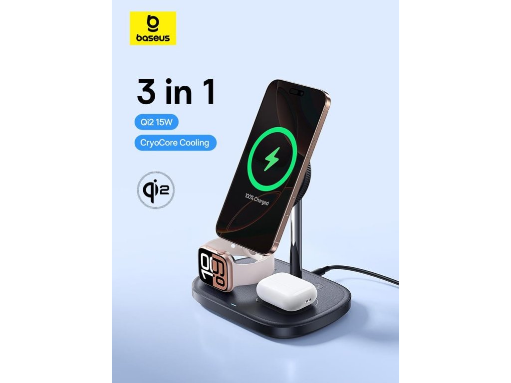 Baseus EnerFill FS41 3v1 bezdrátová nabíječka s chlazením TEC Cosmic Black (45W adaptér EU + 1m datový kabel C-C černý v balení) Zažijte špičkové nabíjení s magnetickým bezdrátovou nabíječkou BASEUS Enerfill FS41 3v1. Tato elegantní stanice, navržená pro bezproblémový přísun energie, nabíjí váš telefon, sluchátka TWS a hodinky najednou. Díky technologii chlazení CryoCore, certifikaci Qi2 a inovativnímu magnetickému uspořádání zajišťuje pokaždé stabilní a rychlé nabíjení. Klíčové funkce a specifikace Chladicí technologie CryoCore: Udržuje optimální nabíjecí výkon účinným odváděním tepla pro bezpečnější a efektivnější nabíjení. Rychlé nabíjení s certifikací Qi2: Dodává až 15 W bezdrátové energie pro telefony a celkový výkon 22,5 W, aby byla vaše zařízení připravena k použití. Trojí nabíjení zařízení: Napájí smartphone, sluchátka TWS (až 5 W) a hodinky (až 2,5 W) současně, čímž šetří místo a čas. Magnetické vyrovnání: Zabudované magnety přesně polohují zařízení, čímž podporují rychlejší nabíjení a snižují ztráty energie. Multifunkční stojánek: Nabízí stabilní platformu pro vystavení nebo používání zařízení s volnýma rukama během jejich dobíjení. Ideální příklady použití Univerzální řešení nočního stolku: Slouží k tomu, abyste měli přes noc plně nabitý telefon, sluchátka a hodinky v jedné přehledné sestavě. Napájecí centrum v kanceláři: Snižte nepořádek a zůstaňte produktivní díky bezdrátovému nabíjení tří zařízení na pracovišti. BASEUS Enerfill FS41 kombinuje pohodlí, rychlost a bezpečnost. Jeho pokročilý chladicí systém zabraňuje přehřátí, zatímco certifikace Qi2 zajišťuje univerzální kompatibilitu s různými zařízeními. Ať už jste vášnivý cestovatel, díky magnetické přesnosti, výkonnému výstupu a kompaktnímu designu této nabíječky je každodenní nabíjení efektivnější a bezproblémové. Zajímavá fakta o bezdrátových nabíječkách 3v1 Mnoho moderních nabíječek 3v1 využívá integrované chlazení nebo metody rozptylu tepla k udržení špičkové účinnosti nabíjení. Certifikace Qi2 zajišťuje univerzální kompatibilitu, takže můžete napájet různé značky a modely bez nutnosti výměny kabelů. Magnetické vyrovnání nejen pomáhá s rychlejším nabíjením, ale také snižuje poškození kabelu v průběhu času. Výrobce/Dovozce do EU: C.P.A. CZECH s.r.o., U Panasonicu 376, 53006 Pardubice - Staré Čívice, Česko, e-mail: cpa@cpa.cz, web: www.cpa.czDodatočné parametre