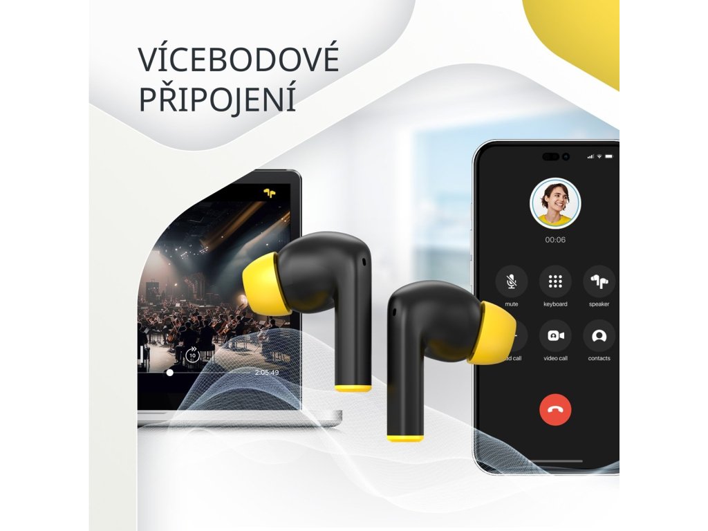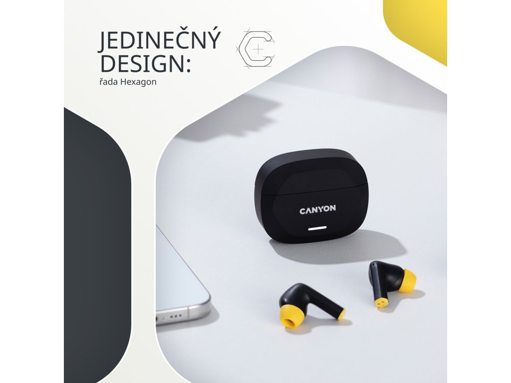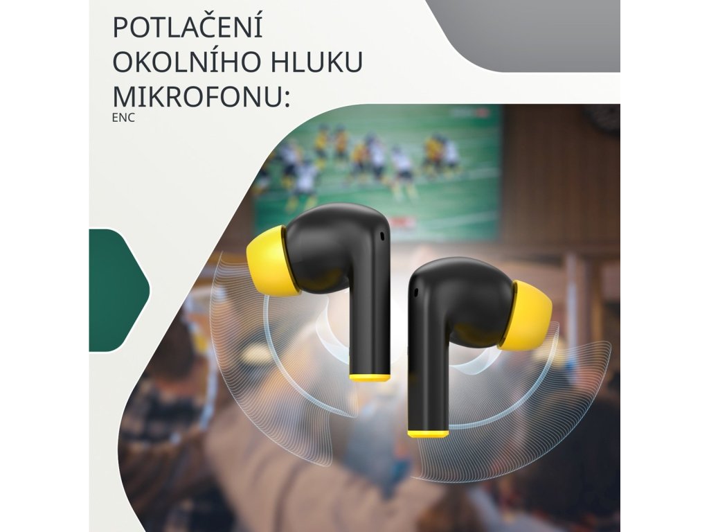Bezdrátová stereo sluchátka True wireless Hexagon 7 Produktové vlastnosti: Aktivní potlačení hluku 4 mikrofony Nejnovější verze BT 5.4 Rychlé nabíjení sluchátek Podpora bezdrátového nabíjení 27 hodin výdrž s nabíjecím pouzdrem Doba přehrávání: 6,5 h ANC vypnuto; 5,5 h ANC zapnuto Doba nabíjení: sluchátka: 50 min; nabíjecí pouzdro: 2 h Chcete od zvuku víc? Zažijte zvuk jako nikdy předtím s bezdrátovými stereo sluchátky True Wireless Hexagon 7. Sluchátka mají funkci aktivního potlačení hluku (ANC) a vy se tak v klidu můžete soustředit na to, co je pro vás skutečně důležité. Díky 4 mikrofonům bude váš hlas čistý během každého hovoru. Připojení BT 5.4 zajišťuje mimořádně rychlé párování, stabilní připojení a energetickou účinnost a udržuje vás ve spojení až na vzdálenost 10 metrů. Sluchátka Hexagon 7 jsou díky funkci bezdrátového rychlého nabíjení připravena k použití za pouhých 50 minut. Poskytují až 6,5 hodiny poslechu s vypnutým ANC a 5,5 hodiny se zapnutým ANC. S nabíjecím pouzdrem si můžete užít působivých až 27 hodin přehrávání. Hexagon 7 jsou pohodlná a stylová sluchátka, která snadno zapadnou do vašeho životního stylu! Jedinečný design řady Hexagon Odvážný design řady Hexagon vás upoutá na první pohled. Ergonomický tvar sluchátek dobře padne do uší a zajišťuje bezpečné a pohodlné nošení i při delším poslechu. Bezdrátové nabíjení Užijte si bezproblémové nabíjení bez zbytečných kabelů. Pouzdro sluchátek Hexagon 7 podporuje bezdrátové nabíjení. Stačí jej položit na nabíječku kompatibilní se standardem Qi. Aktivní potlačení hluku Nalaďte se na okolní svět díky špičkové technologii aktivního potlačení hluku (ANC). Ať už jste na rušné cestě do práce nebo se v klidu potřebujete soustředit na práci. Potlačení okolního hluku mikrofonu Díky funkci potlačení okolního hluku (ENC) můžete vyřizovat hovory i v tom nejhlučnějším prostředí. Tato funkce se 4 mikrofony odfiltruje okolní hluk a zajistí, že váš hlas bude zřetelný v každé situaci. Vícebodové připojení Funkce vícebodového připojení umožňuje sluchátkům připojit se přes Bluetooth k více zařízením najednou. Umožní vám zůstat připojeni k pracovním schůzkám, sledovat videa na notebooku a zároveň přijímat hovory na telefonu. Stabilní připojení a energetická účinnost Sluchátka Hexagon 7 jsou vybavena nejnovější verzí BT 5.4 a nabízí rychlé a stabilní připojení s energetickou účinností. Jsou ideální pro plynulé streamování a delší dobu přehrávání. Kompaktní design Sluchátka Hexagon 7 mají elegantní design a jsou lehká. Nabíjecí pouzdro se snadno vejde do kapsy nebo batohu. 27 hodin přehrávání Vychutnejte si zvuk, který drží krok s vaším tempem. Sluchátka mají působivou výdrž 27 hodin s nabíjecím pouzdrem. Užijte si na jedno nabití až 6,5 hodin přehrávání s vypnutým ANC. Ideální volba pro dlouhé dojíždění, výlety nebo hektický pracovní den. Pohlcující zvukový zážitek Vychutnejte si bohatý, dynamický zvuk sluchátek Hexagon 7. Hluboké basy, čisté středy a ostré výšky vylepší každý váš film, hudbu i podcasty. Kapacitní baterie Vysokokapacitní baterie zajišťuje delší výdrž a zároveň umožní rychlé nabíjení. Samotná sluchátka nabijete za pouhých 50 minut, nabíjecí pouzdro za 2 hodiny. Dotykové ovládání Sluchátka mají intuitivní dotykové ovládání. Přehrávání, pozastavení, přepínání skladeb, nastavení hlasitosti nebo přijímání hovorů, to vše pouhým dotykem. Aktivní potlačení hluku 4 mikrofony Nejnovější verze BT 5.4 Rychlé nabíjení sluchátek Podpora bezdrátového nabíjení Výdrž 27 hodin s nabíjecím pouzdremDodatočné parametre