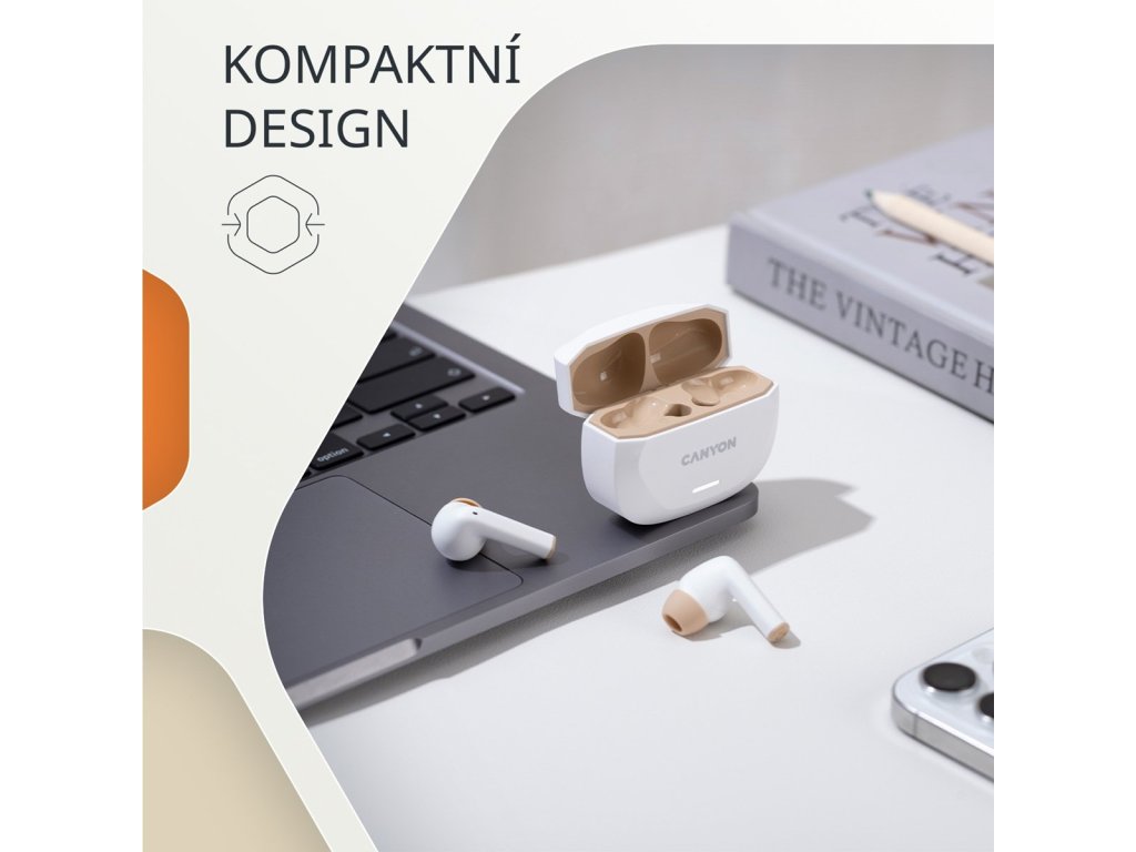 Bezdrátová stereo sluchátka True wireless Hexagon 7, bílo/béžová