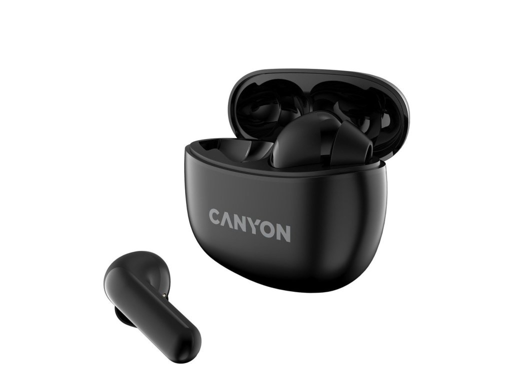 Bezdrátová stereo sluchátka True Wireless TWS-5 Produktové vlastnosti: Technologie pro úsporu energie BT 5.3 Automatické párování Až 38 hodin přehrávání s nabíjecím pouzdrem Doba nabíjení pouzdra: 2 hodiny Dotykové ovládání Vstup pro nabíjení: USB Type-C Možnost použití jednoho nebo obou sluchátek Součástí balení jsou 3 páry náhradních špuntů různých velikostí Tato bezdrátová sluchátka jsou určena pro ty, kteří jsou neustále v pohybu a rádi poslouchají hudbu ve vysoké kvalitě. Nejnovější verze Bluetooth 5.3 zajišťuje stabilní párování jak se zdrojem zvuku, tak mezi pravým a levým sluchátkem. Kromě toho se díky tomuto protokolu prodloužila provozní doba sluchátek až na 7,5 hodiny. Čistý a prostorový stereofonní zvuk vám umožní vychutnat si oblíbenou hudbu ve vysoké kvalitě. Funkce TWS umožňuje spárování s druhým reproduktorem BT TWS pro pohlcující stereofonní zvukový zážitek. Sluchátka umožňují přijímat telefonní hovory a používat hlasového asistenta, aniž byste se museli dotknout smartphonu. K nabíjení sluchátkového pouzdra slouží kabel USB typu C, stejný, jaký se používá ve většině moderních smartphonů. Pohodlná konstrukce náušníků se silikonovými špunty zajišťuje pevné uchycení v uchu. Náhradní špunty v různých velikostech umožňují vybrat si ty správné pro vás a zajistit tak co nejpohodlnější nošení. Spolehlivý audio gadget pro milovníky aktivního životního stylu! DOTYKOVÉ OVLÁDÁNÍ Dotykové ovládací tlačítko na sluchátkách umožňuje přijímat hovory nebo spouštět hlasového asistenta, aniž byste se dotkli smartphonu. KOMFORT V KAŽDÉM DETAILU Kompaktní pouzdro s praktickou karabinou vám usnadní přenášení hudby, ať jste kdekoli. VLASTNÍ STYL Stylový minimalistický design a módní barvy - tato sluchátka se stanou vaším stylovým doplňkem pro každý den. Pohodlný tvar náušníků a přídavné náušníky různých velikostí zajistí naprosté uživatelské pohodlí. STABILNÍ SPOJENÍ S JAKÝMKOLI ZAŘÍZENÍM Nejnovější verze BT 5.3 poskytuje stabilní signál, plynulé streamování zvuku a zlepšuje kvalitu telefonních hovorů. Smartphone, notebook, tablet - vyberte si jakýkoli typ zařízení pro připojení. Sluchátka Canyon zajistí stabilní připojení a kvalitní zvuk během hovorů. DLOUHÁ PROVOZNÍ DOBA Technologie BT 5.3 zajišťuje vyšší provozní dobu sluchátek. S pouhými dvěma hodinami plného nabití můžete přehrávat hudbu a telefonovat 7,5 hodiny. S pouzdrem lze sluchátka používat až 37,5 hodiny. Doba přehrávání 7,5 hodiny Pohodlí při nošení S pouzdrem až 38 hodin provozu Dotykové ovládáníDodatočné parametre