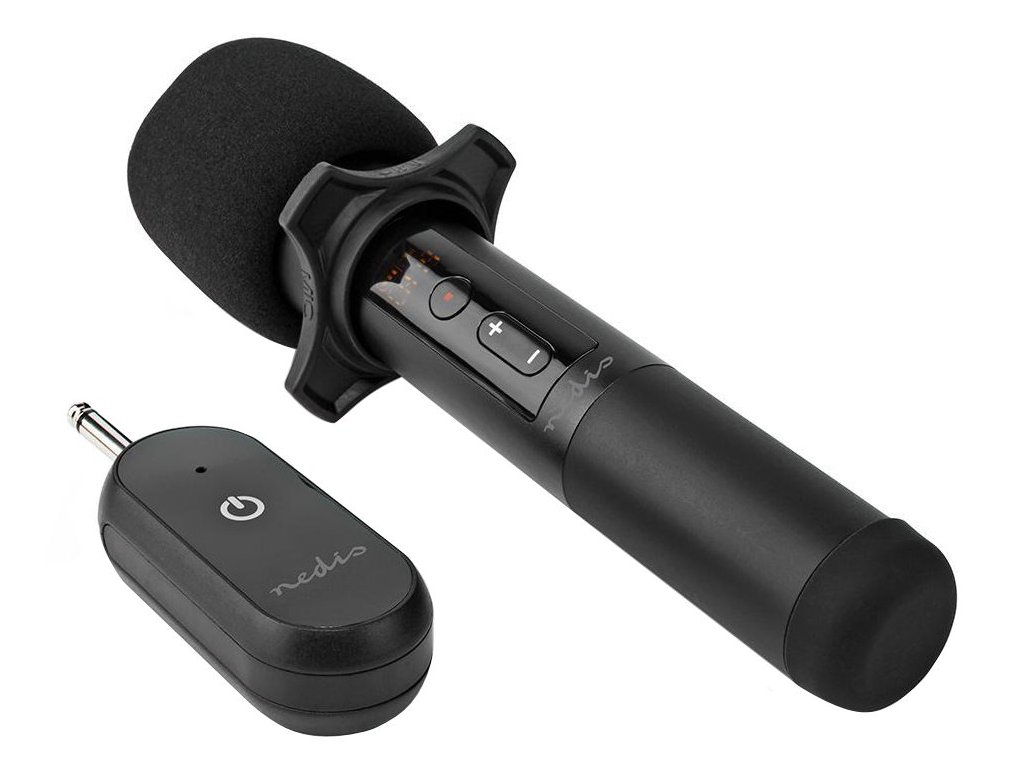Nedis MPWL200BK Základom každej skvelej karaoke párty je bezdrôtový mikrofón, ktorý poskytuje dostatočnú voľnosť pohybu. Aby mikrofón správne fungoval, stačí pripojiť bezdrôtový prijímač s konektorom 6,35 mm jack k mikrofónnemu vstupu ľubovoľného reproduktora a synchronizácia sa uskutoční automaticky už pri zapnutí oboch zariadení. Vďaka možnosti výberu z 20 frekvenčných kanálov zaručuje kvalitu prenosu bez skreslenia na vzdialenosť až 50 m. Displej LCD zobrazuje informácie o sile signálu, úrovni hlasitosti alebo stave batérie. Mikrofón je napájaný dvoma batériami AA a vydrží v prevádzke až 10 hodín. Prijímač používa na napájanie ďalšie dve batérie AA. Súčasťou balenia je aj praktický stojan a pop filter. ZÁKLADNÉ ŠPECIFIKÁCIE Rozhranie: 6,35 mm jack Bezdrôtové pripojenie: 640,5 - 659,5 MHz Frekvenčný rozsah: 70 Hz - 13 kHz Citlivosť mikrofónu: -95 dB Impedancia: 1000 Ohm Farba: čiernaDodatočné parametre