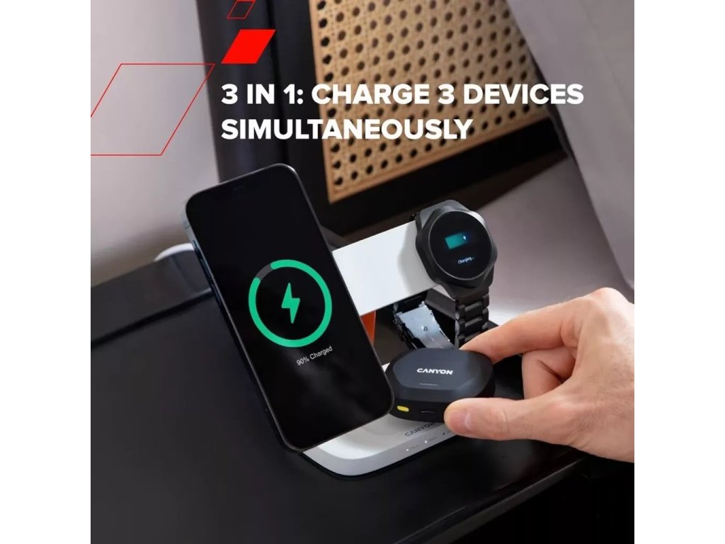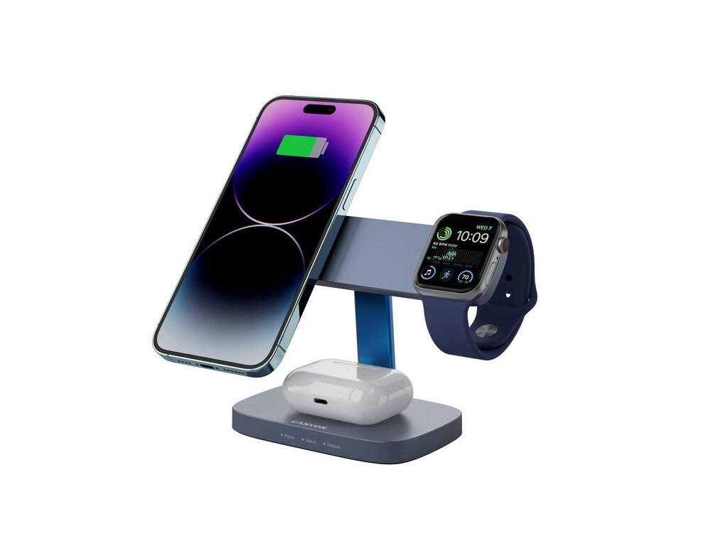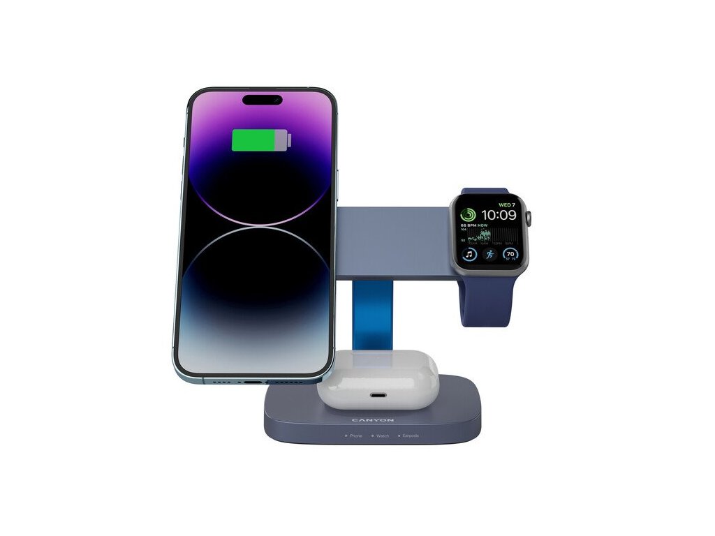 Bezdrôtová nabíjačka CANYON HEXAGON WCS-310 3v1 tmavo sivá/modrá