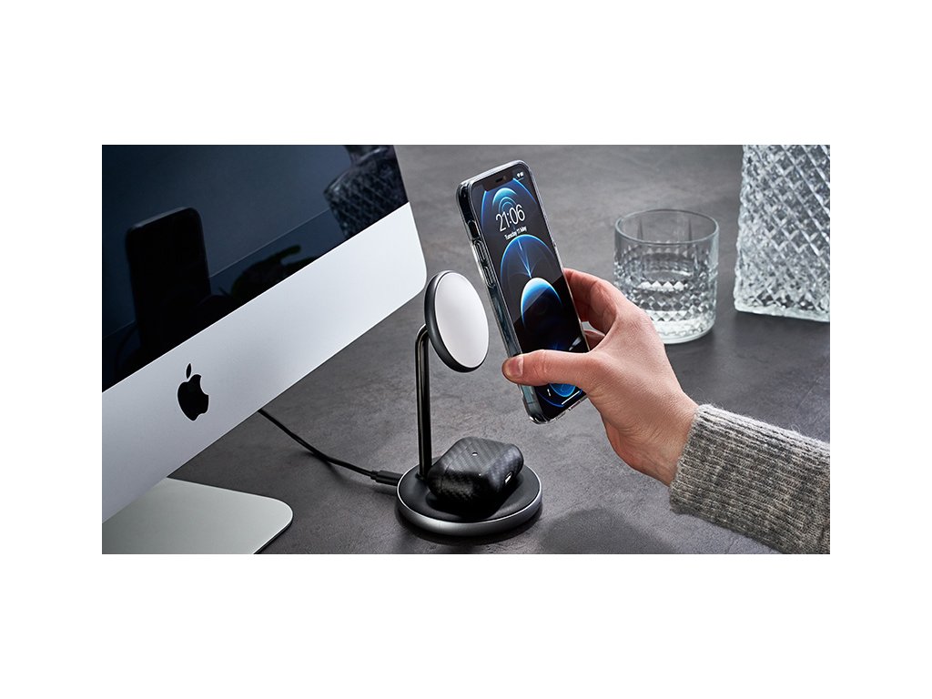 Magnetická bezdrôtová nabíjačka Epico 2v1 je magnetický stojan, ktorý kombinuje výkon duálneho bezdrôtového nabíjania a prémiový dizajn. Svoj iPhone môžeš nabíjať výkonom 7,5 W a sluchátka AirPods výkonom až 5 W. Stojan je ľahko nastaviteľný do ideálneho uhla. Bezdrôtová nabíjačka je vybavená LED diódou, ktorá vás informuje o stave nabitia vášho zariadenia. Súčasťou balenia je kábel USB-C a 18W adaptér QC, ktorý vám umožní rýchle nabíjanie. Nabíjačka je kompatibilná so zariadeniami iPhone radu 12 a 13.Dodatočné parametre