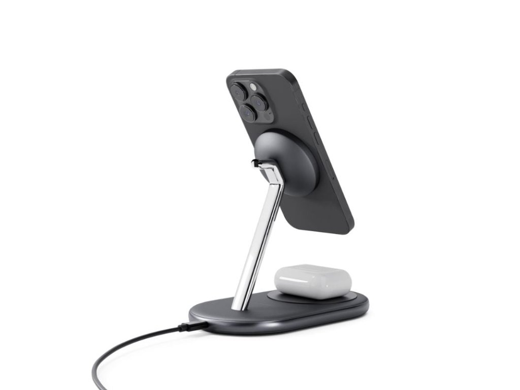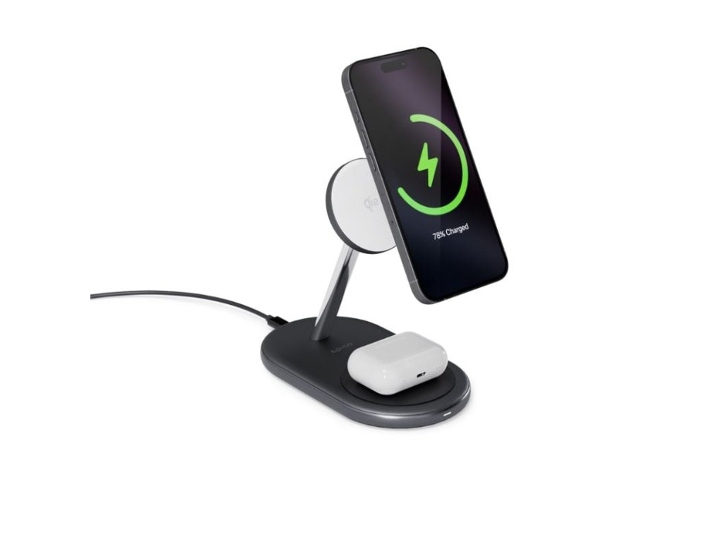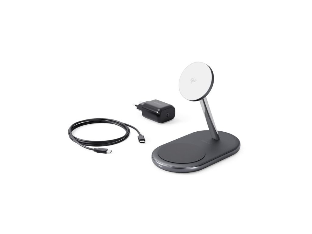 Bezproblémové nabíjanie s prepracovaným dizajnom Elegantný dizajn: vyrobený z prvotriednych materiálov, vďaka ktorým sa táto nabíjačka stane krásnym doplnkom vášho stola. Bezdrôtový výstup Qi2: Efektívne bezdrátové nabíjanie smartfónov s maximálnym výkonom 15 W, až 2× rýchlejšie ako štandardné nabíjanie Qi. Nabíjanie 2v1: Umožňuje súčasné nabíjanie smartfónu a sluchádiel AirPods (5 W). Stabilná gumová základňa: Vybavená protišmykovou gumovou základňou pre lepšiu stabilitu. Flexibilné polohovanie: Podporuje polohovanie smartfónu na výšku aj na šírku. Kompletné balenie: Obsahuje 25W sieťovú nabíjačku a kábel USB-C na USB-C.Dodatočné parametre
