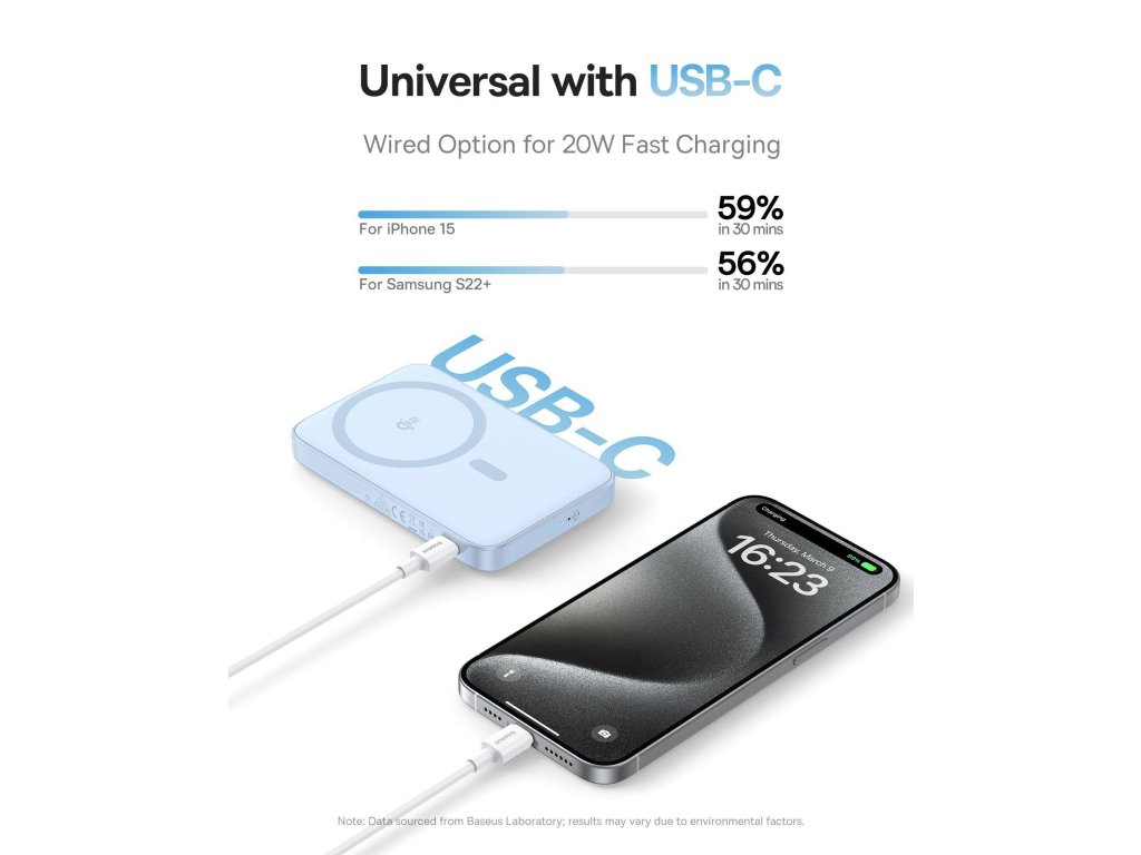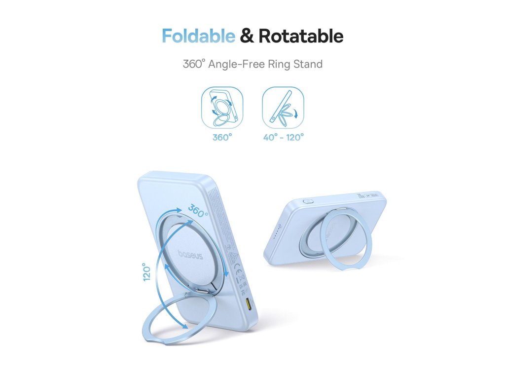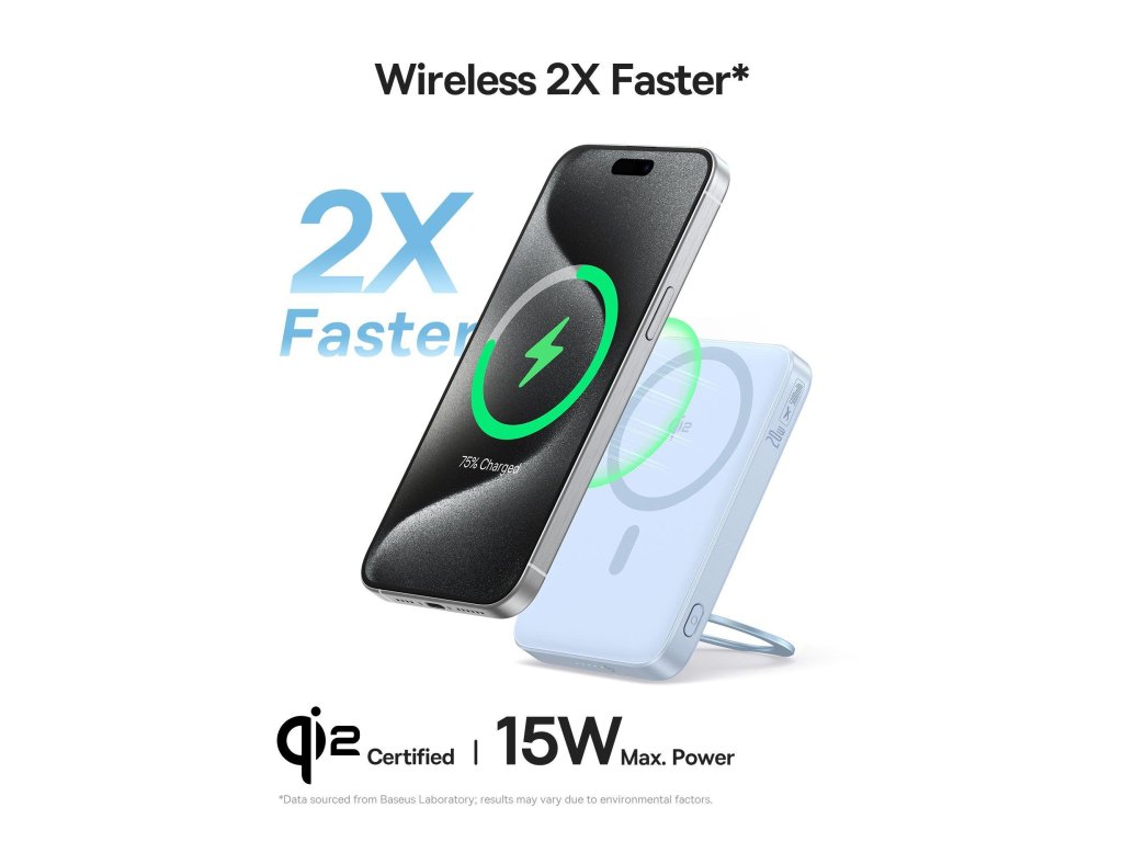 15W bezdrôtové nabíjanie s certifikáciou Qi2: 2-krát rýchlejšie ako tradičné 7,5W, rýchle nabíjanie pre iPhone Nabíjanie 2 zariadení súčasne: Nabíjajte svoj iPhone prostredníctvom bezdrôtového nabíjania a iné zariadenia súčasne cez port USB-C Vzdušný, pohodlný a prenosný dizajn s veľkou kapacitou 5000 mA Vstavaný otočný stojan ponúka podporu pre volné ruky a umožňuje vám sledovať videa počas nabíjania zariadenia. Technické špecifikácie:Dodatočné parametre