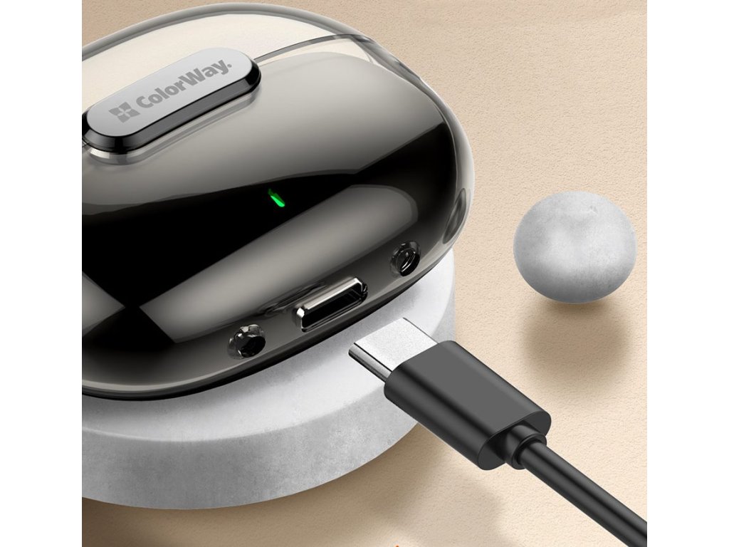 Farebnosť CW-TWS2BK Bezdrôtové sluchátka s mikrofónom, navrhnuté na bezproblémové prehrávanie zvuku a pohodlnú hlasovú komunikáciu. Sú plne kompatibilné so všetkými zariadeniami, ktoré podporujú technológiu Bluetooth, bez ohledu na výrobcu alebo operačný systém. Vďaka bezpečnému uchyteniu a jednoduchému používaniu sú ideálne na dlhodobé používanie. Slúchadlá tiež umožňujú ovládať hudbu a upravovať hlasitosť priamo z nich. Na jedno nabitie dokážem prehrávať hudbu až 4 hodiny as nabíjacím puzdrom celkovo až 20 hodín. Na nabíjanie pouzdra sa používa konektor USB-C. ZÁKLADNÉ ŠPECIFIKÁCIE Slúchadlá Frekvenčný rozsah: 20 Hz - 20 kHz Bezdrôtová technológia: Bluetooth 5.3 Mikrofón: áno Kapacita batérie: 2× 30 mAh Výdrž batérie: 4 h (až 20 hs nabíjacím puzdrom) Farba batéria: 300 mAh Farba: černo-transparentnáDodatočné parametre
