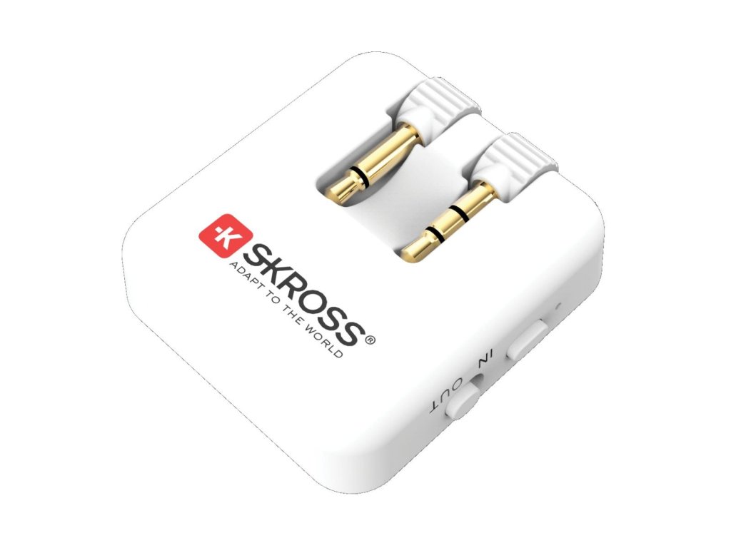 Už žiadne univerzálne slúchadlá na cestovanie lietadlom. Pripojte sa bezdrôtovo k svojim osobným slúchadlám a rozlúčte sa s rušivými káblami. Bezdrôtový zvukový adaptér SKROSS pohodlne pripojí vaše bezdrôtové slúchadlá k televízorom, počítačom, autám, prenosným herným zariadeniam, cvičebným strojom a ďalším zariadeniam. Obojsmerná prevádzka: umožňuje bezdrôtovo prijímať zvuk do slúchadiel alebo dokonca prenášať zo zdroja do reproduktorov pomocou pripojenia Bluetooth. Poskytuje až 20 hodín výdrže batérie s nabíjaním cez USB-C. Dva samostatne sklopné 3,5 mm konektory mini-jack zabezpečujú kompatibilitu s rôznymi zariadeniami s jedným alebo dvoma vstupmi.Kompatibilný s bezdrôtovými slúchadlami s rozhraním Bluetooth 5.0 a vyšším