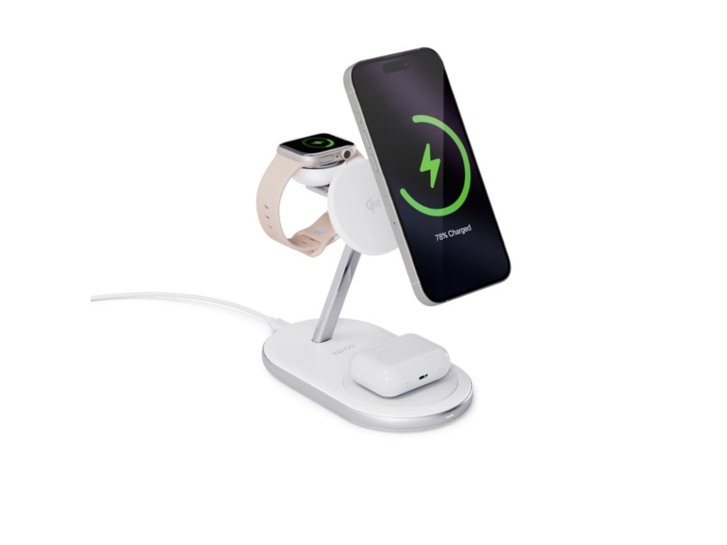 Nádherne spracované riešenie pre všetky vaše potreby nabíjania Elegantný dizajn: vyrobený z prvotriednych materiálov, vďaka ktorým sa táto nabíjačka stane krásnym doplnkom vášho stola. Bezdrôtový výstup Qi2: Efektívne bezdrôtové nabíjanie smartfónov s maximálnym výkonom 15 W, ktoré je až 2× rýchlejšie ako štandardné nabíjanie Qi. Nabíjanie 3v1: Umožňuje súčasné nabíjanie smartfónu, hodiniek Apple Watch (5 W) a sluchádiel AirPods (5 W). Certifikované vyrobené pre Apple Watch: Certifikované spoločnosťou Apple, aby sa zabezpečila úplná kompatibilita s budúcimi aktualizáciami a bezchybný výkon. Stabilná gumová základňa: Vybavená protišmykovou gumovou základňou pre lepšiu stabilitu. Flexibilné umiestnenie. Kompletné balenie: Obsahuje 30W sieťovú nabíjačku a kábel USB-C na USB-C.Dodatočné parametre