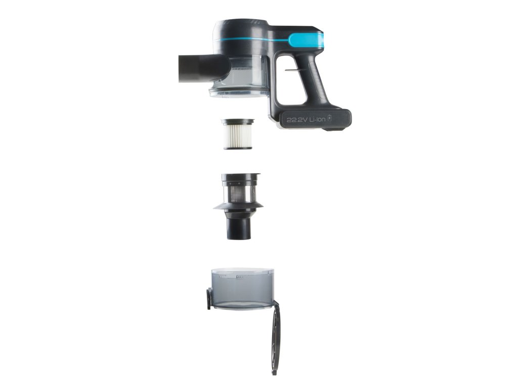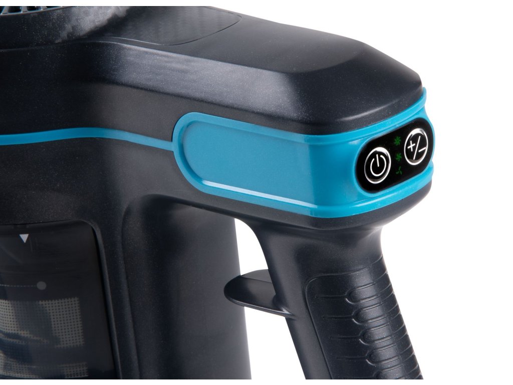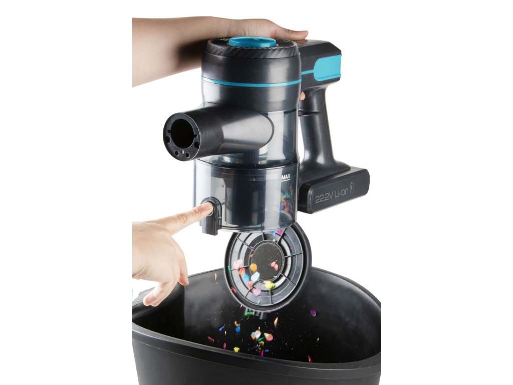 Akumulátorový tyčový vysávač používajte v kombinácii s ručným vysávačom v jednom pre celú domácnosť. Uľahčí vám upratovanie na ťažko prístupných miestach, v dielni av garáži a ľahko s ním vysajete celý interiér auta. Základné parametre vysávača: Typ vysávača: 2 v 1 Li-ion 22,2 V DC (2200 mAh) Výkon motora: 120 W (sací podtlak: 10 kPa) Čas vysávania: do 40 min. Objem nádoby na prach 0,6 l. 3 voliteľné úrovne sacieho výkonu Farba: čierna/metalická modrá Filtračný systém: Filtračný systém prostredníctvom kovového filtra hrubých nečistôt + HEPA filter HEPA filtrácia jemných nečistôt, pliesní, alergénov a iných mikroorganizmov Úplne demontovateľný filtračný systém na jednoduché čistenie - Vhodné na čistenie a udržiavanie čistoty vzduchu: Dizajn 2 v 1: Tyčový vysávač na pohodlné vysávanie podlahy, stropu alebo ťažko prístupných miest Ručný vysávač na pohodlné vysávanie nábytku, drobcov na stole, celého interiéru auta atď. Príslušenstvo: Podlahová hubica s elektricky poháňanou turbo kartáčom a LED osvetlením Prachový kartáč Štrková hubica Súprava nabíjacej stanice s držiakom vysávača a príslušenstvom na montáž na stenu Ďalšie užitočné funkcie: Všetky trysky možno ľahko pripojiť priamo k motorovej časti alebo k nasávacej trubici. Kartáč so štetinami rôznej tvrdosti - tvrdšie štetiny zachytávajú hrubé nečistoty a mäkké zoškrabujú prach Kartáč sa dá z podlahovej hubice ľahko vybrať a vyčistiť. x 70 cm Hmotnosť balenia: 3,5 kg Rozmery zostaveného vysávača (š xdxv): 25 x 21 x 111,5 cm Rozmery motorovej časti (š xdxv): 30,5 x 11,5 x 21 cm Hmotnosť motorovej časti: 1,3 kg Šírka kartáča: 1 sacieho potrubia: 63 cm Parametre nabíjacieho adaptéra a batérie: Batérie: Li-ion 22,2 V DC 2200 mAh Nabíjací adaptér: 100-240 V ~ 50/60 Hz, výstup 26,5 V DC 0,5 A 13,5 W Priemer konektora adaptéra: 5 mmDodatočné parametre