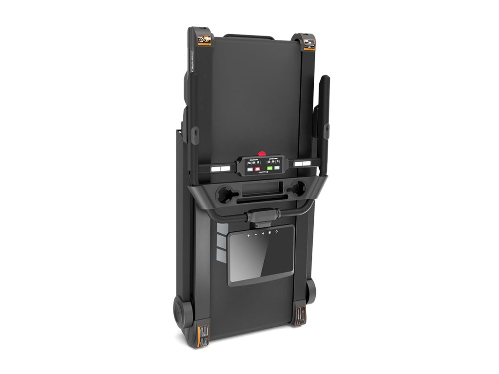 Chytrý trénink i bez mobilu inSPORTline ZenRun 120 není jen běžecký pás – je to chytré tréninkové centrum s 15,6" dotykovým otočným TFT displejem až o 180 stupňů, na kterém běží aplikace jako Kinomap, a to bez nutnosti mobilního telefonu. Zabavit se během tréninku však můžete i pomocí dalších předinstalovaných aplikací, které snadno spustíte i na pozadí, takže můžete sledovat třeba svůj oblíbený film zatímco trénink budete mít pořád pod kontrolou – vybírat lze například z Netflixu, YouTube, Prime Video a mnoha dalších. Nevybrali jste si? Žádný problém. Díky funkci zrcadlení obrazovky si na displej promítnete cokoli ze svého zařízení – třeba rozcvičkové video nebo oblíbený seriál. Výbava, co Vás nezastaví Bezkartáčový motor s výkonem až 4 HP, rychlostí až 22 km/h a elektronickým sklonem do 12 % se inSPORTline ZenRun 120 přizpůsobí každému stylu tréninku. Nabízí 36 programů, včetně HRC režimu, který sleduje Vaši tepovou frekvenci a automaticky upravuje zátěž tak, abyste trénovali efektivně – a zároveň bezpečně. A pokud si budete chtít dopřát rozcvičku nebo závěrečné protažení mimo pás, jistě Vás potěší již zmíněná otočná obrazovka, díky které si jednoduše pustíte vedenou sestavu. Složený za pár vteřin Až doběháte, nemusíte nic zdlouhavě skládat ani přemýšlet, kam s ním. inSPORTline ZenRun 120 díky chytrému skládacímu mechanismu složíte bez námahy a bez nářadí - připravený je hned po vybalení z krabice. Jeho kompaktní a stabilní konstrukce pak umožní snadné uskladnění pod postel, za skříň nebo klidně ke zdi. Ideální řešení pro byty, kde se cení každý volný centimetr – a kde běžecký pás nemusí být součástí interiéru 24/7. Pohodlný a promyšlený Když nechcete nikoho rušit ani reproduktory, stačí připojit Bluetooth sluchátka a běžet v úplném soukromí. Nechybí ani praktické detaily, které zpříjemní každý běh – USB port pro nabíjení telefonu, vestavěné reproduktory, držák na lahev i bezpečnostní klíč pro klid v duši. Zkrátka všechno, co potřebujete, abyste mohli běžet naplno – a bez výmluv. Snadné složení, intuitivní operační systém i chytrá ovládací kolečka, kterými rychle změníte rychlost a zdvih pásu, jsou už pak jen třešničkou promyšleného designu inSPORTline ZenRun 120. Mobilní aplikace Možnost propojení s mobilními aplikacemi skrze Bluetooth: Zwift (Android / iOS / Windows / Mac) trénink formou hry ve 3D virtuálním prostředí nastavení cílů a vytvoření tréninkového plánu možnost komunikace s ostatními uživateli online vytvořte si vlastního avatara, který vás bude na obrazovce zastupovat aplikaci Zwift lze propojit s Apple Health, Strava, Training Peaks, Garmin Connect, Adidas Training, Map My Fitness, Today's Plan Kinomap (Android / iOS) přednastavené trasy, ze kterých je přehráváno video snadné promítání skrze webový prohlížeč na vzdálené obrazovce (počítač nebo chytrá TV) při volbě typu stroje zvolte ikonu běžeckého pásu, jako značku stroje vyberte inSPORTline a jako model ZenRun 120 aplikace je zpoplatněná FitShow (Android / iOS) bezplatná aplikace interaktivita: stroj automaticky zvyšuje či snižuje sklon dle převýšení na trase v aplikacích vyzkoušejte kompatibilitu aplikací s vaším mobilním zařízením předem pro správnou funkci aplikací mějte povolené a zapnuté WiFi, Bluetooth a GPS (určování polohy) a povolena všechna oprávnění, která aplikace vyžaduje; se strojem se párujte až v aplikaci, nikoliv v nastavení Bluetooth mobilního zařízení inSPORTline není vývojářem zmíněných aplikací a nepřejímá zodpovědnost za případné chyby či nekompatibilitu aplikací (v případě problémů jsme však ochotni pomoct) Klíčové vlastnosti: skládací konstrukce, která šetří místo plynulý chod rychlá a snadné ovládání připojení sluchátek pomocí Bluetooth chytré aplikace přímo na běžeckém pásu - bez nutnosti mobilního telefonu funkce zrcadlení obrazovky telefonu bezpečnostní klíč stojan na nápoj dotykový otočný TFT displej o úhlopříčce 15,6" operační systém podporující češtinu reproduktory Virtual Training (výběr scenérií přehrávaných na displeji) USB port pro nabíjení telefonu multifunkční otočná kolečka na madlech Easy Fold System: jednoduchý a efektivní mechanismus umožňuje velmi snadné rozložení i složení pásu HRC program: stroj zvyšuje nebo snižuje zátěž tak, aby uživatel byl neustále v optimální zóně tepové frekvence počítač zobrazuje: vzdálenost, čas, kalorie, kroky, rychlost, tempo, tepovou frekvenci předinstalované aplikace: YouTube, Netflix, Disney+, Amazon Prime Video, Facebook, Twitter, Instagram, Spotify, Kinomap (není možno doinstalovávat další) Technický popis: výkon motoru 4 HP zdvih běžecké plochy elektronický počet úrovní zdvihu 12 maximální sklon běžecké plochy 6,84° (12 %) délka běžecké plochy 150 cm šířka běžecké plochy 52 cm minimální rychlost 0,80 km/h maximální rychlost 22 km/h vhodný i pro chůzi maximálně 2 hodina nepřetržité chůze poté vhodné nechat pás 2-5 minut běžet naprázdno na maximální rychlost z důvodu ochlazení motoru následně je možné pás znovu používat pro chůzi celkový počet programů 36 přednastavené programy 26 uživatelské programy 10 funkce pauza ano HRC program ano manuální program ano snímače tepové frekvence ano držák na lahev ano stojan na tablet ne transportní kolečka ano systém vyrovnání nerovností ne odpružení speciální tlumicí podložka z gumového materiálu s tvrdostí 33° Shore bezpečnostní brzda ano přijímač hrudního pásu ano, pro nekódovaný analogový 5,3 kHz signál i pro Bluetooth z analogových pásů doporu