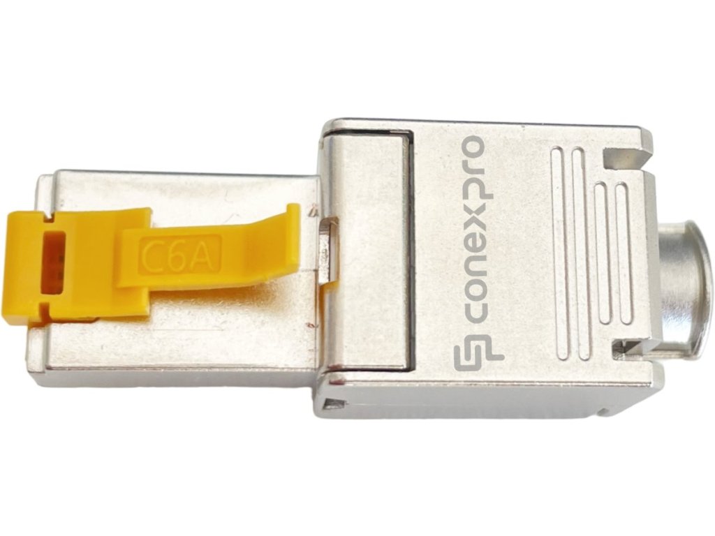 Odolný tienený konektor RJ45 bez použitia náradia od spoločnosti Conexpro určený na použitie s káblom FTP triedy CAT6A a vodičmi typu licna s pohodlnou inštaláciou, ktorá nevyžaduje použitie rezného nástroja. Tento konektor je neoddeliteľnou súčasťou štruktúrovanej kabeláže a je starostlivo navrhnutý tak, aby poskytoval bezproblémové spojenie medzi kontaktmi konektora a medenými vodičmi dátového kábla 8p8c. Kabel FTP ľahko nainštalovate do dvojitej samoreznej svorkovnice, ktorá je farebne označená podľa normy T568A alebo T568B. Svorkovnica je vhodná pre káble s vodičmi s prierezom 26 AWG - 22 AWG.Dodatočné parametre