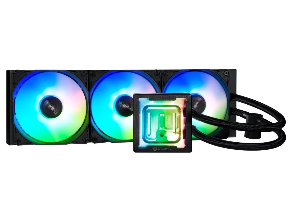 BitFenix Cube 360 Vodný chladič navrhnutý na chladenie širokého spektra procesorov. Vyznačuje sa vysokou kvalitou, výkonom a spoľahlivosťou. Má tri 120 mm veľké ventilátory s ARGB podsvietením. Odolné opletené hadice sú dlhé 450 mm a vďaka dostatočne širokému priemeru zabezpečujú plynulý prietok chladiacej kapaliny. Chladič sa dodáva s teplovodivou pastou BitFenix TF10 Extreme pre maximálny odvod tepla. ZÁKLADNÉ ŠPECIFIKÁCIE Určenie chladiča: pre CPU Typ chladiča: vodný Podporované sockety: chladič: chladič pre chladič: Podporované patice: Intel LGA 1150, 1151, 1155, 1200, 1700 AMD AM4, AM5 Veľkosť ventilátora: AM 2000 otáčok za minútu Hlučnosť: max. 36 dBA Dĺžka hadice: 450 mm Rozmery: 397 × 120 × 32 mm Farba: čiernaDodatočné parametre