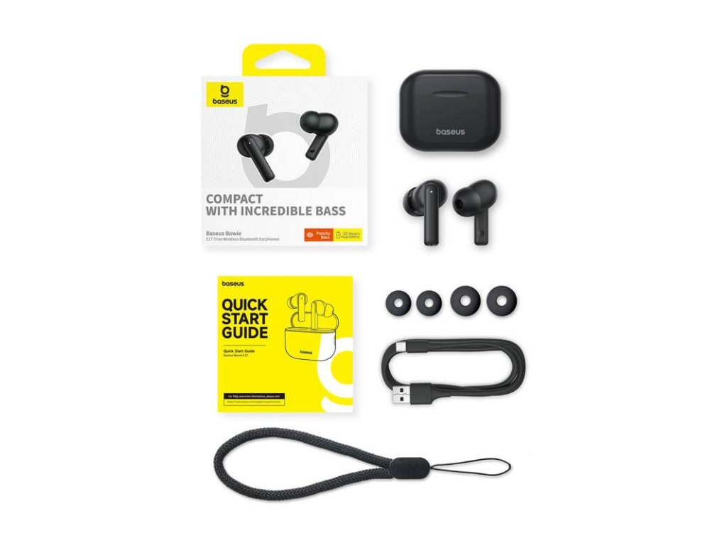 Bezdrôtové slúchadlá Baseus Bowie E17 s technológiou True Wireless Sound sa chvália pohodlným dizajnom a strhujúcim audiom, ktoré oceníte nielen pri počúvaní hudby, ale aj v práci, pri hraní hier alebo sledovaní filmov. Tento model ponúka široký frekvenčný rozsah od 20 Hz do 20 kHz, čo znamená, že budete počuť dych vyrážajúce basy aj fantasticky čisté výšky v celom počuteľnom spektre. Spoľahlivý prenos Prevedenie bez kábla je veľmi pohodlné, pretože vás nijako neobmedzuje, nech už robíte čokoľvek. O prenos dát sa navyše stará spoľahlivá technológia Bluetooth 5.3 s dostatočne dlhým dosahom, vysokou stabilitou a nízkou latenciou. To znamená, že zvuk bude vždy dokonale synchronizovaný s obrazom, čo oceníte obzvlášť pri sledovaní filmov a hraní hier, kde môže byť nízka latencia rozhodujúca. Kľúčové vlastnosti: Detailná akustika s čistými výškami a hlbokými basmi Stabilné pripojenie cez Bluetooth 5.3, nízka latencia Dlhá výdrž baterky je ideálna na cesty aj do práce Rýchle nabíjanie sa postará, aby bola vždy pripravená na použitie Potlačenie hluku eliminuje rušivé zvuky na pozadí pri hovoroch Pohodlný dizajn, ktorý skvele drží v ušiach Elegantná konštrukcia sa hodí na každodenné použitieDodatočné parametre
