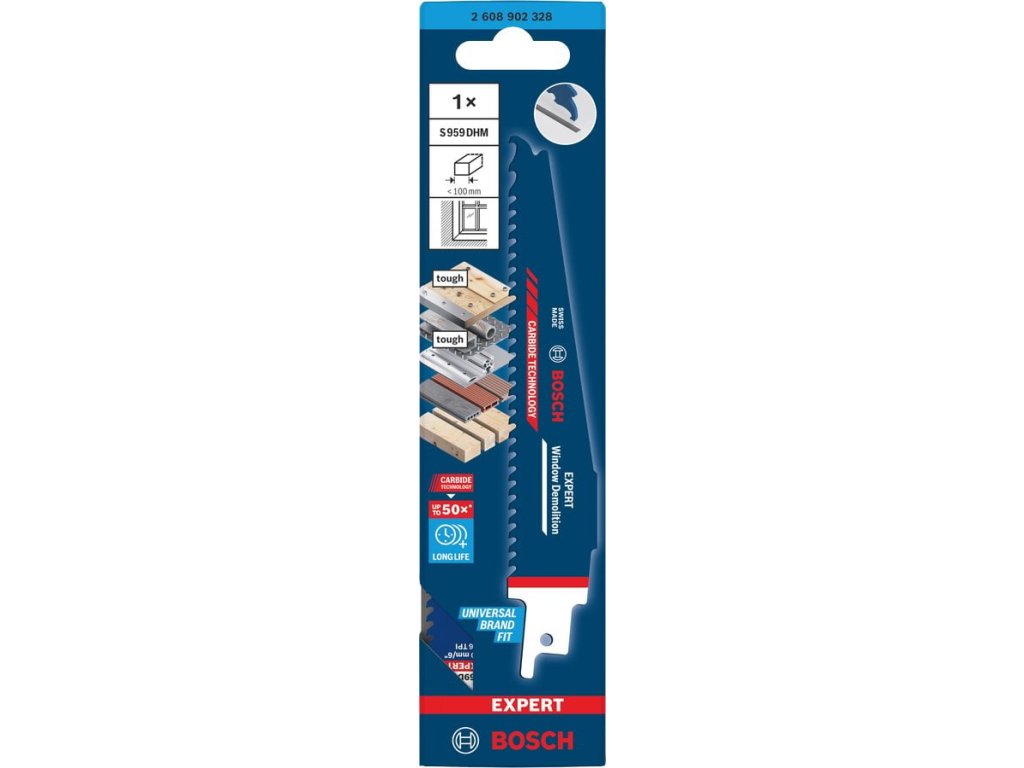 Jedná se o karbidový pilový list s upínáním typu S (šavlová pila), navržený speciálně pro demoliční práce, zejména řezání okenních rámů z jakéhokoli materiálu (dřevo, dřevo s kovem, plast, kompozity). Díky technologii Bosch Carbide nabízí extrémní životnost.Klíčové Specifikace