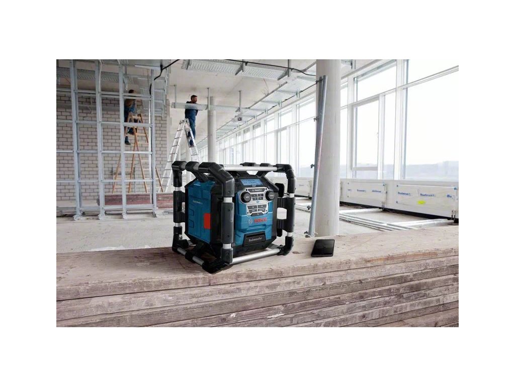 Vysoko flexibilná hudobná zábava: príjem digitálneho (DAB+; Bluetooth®) alebo tradičného rádia (FM) alebo AUX Výnimočná úroveň robustnosti: ochranný rám navrhnutý tak, aby odolal náročným podmienkám na stavenisku Krištáľovo čistý masívny zvuk: štyri 20 W reproduktory (každý s výkonom 5 W), integrovaný 18V-5 SC Professional je robustné rádio s výkonným zvukom pre náročné podmienky na stavenisku. Odolné rádio kompatibilné s DAB+, Bluetooth®, FM a AUX zaručuje ten správny zvuk pre príjemný zážitok z práce. Rádio GPB 18V-5 SC Professional je ideálnou voľbou na prenos zvuku hudby do drsného pracovného prostredia a dodáva sa s ochranným rámom na stavenisko. Krištáľovo čistý a masívny zvuk tohto rádia zabezpečujú štyri reproduktory s kombinovaným výkonom 20 W a integrovaný subwoofer (20 W) pre pôsobivé basy. Zariadenie je vhodné najmä na príjem digitálnych signálov a prehrávanie hudby zo smartfónu. Je kompatibilný so všetkými 18V akumulátormi Bosch Professional. Technické parametre Napätie batérie 18 V Technické údaje Frekvenčné pásmo FM 87,5 - 108 MHz Frekvenčné pásmo DAB+ 174,928 - 239,2 MHz Uložené stanice FM 4 Uložené stanice DAB+ 4 Vstupné napätie batérie 18 V Vstupné napätie siete 100 - 2 zosilňovača (sieťový prevádzka) 40 W Dodávané príslušenstvo 1× pomocný kábel 2× 1,5 V batéria LR6 (AA) Kartónová škatuľaDodatočné parametre