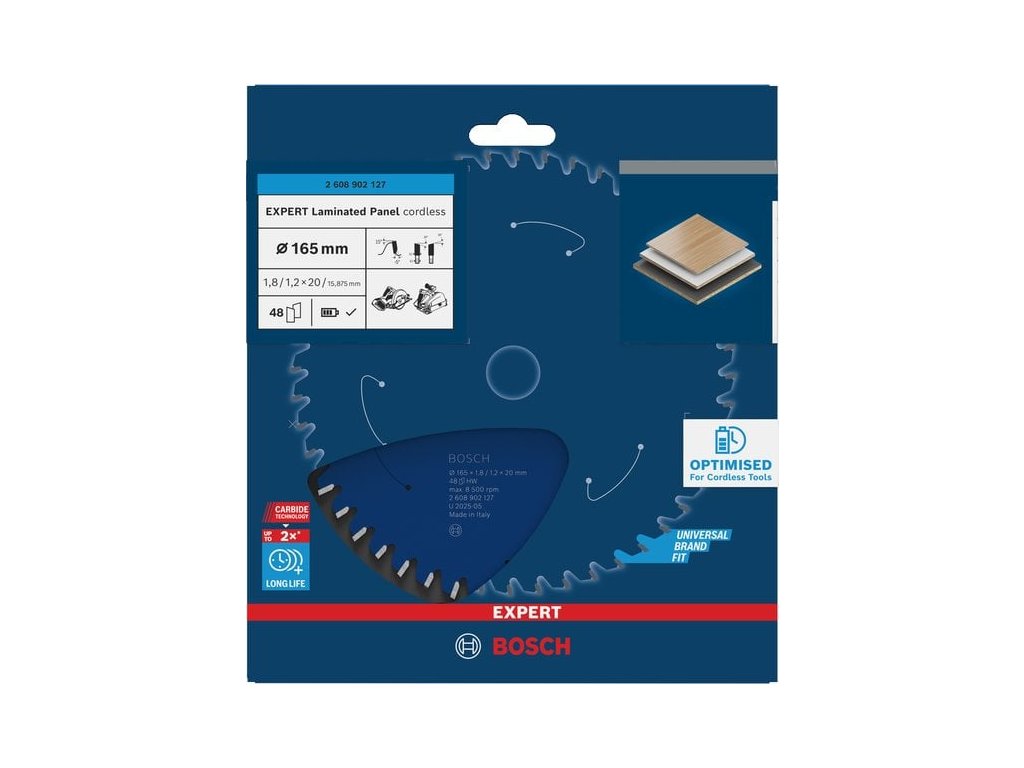BOSCH Pilový kotouč EXPERT Laminated Panel cordless, 165 × 1,8/1,2 × 20 mm, T48 (2.608.902.127)