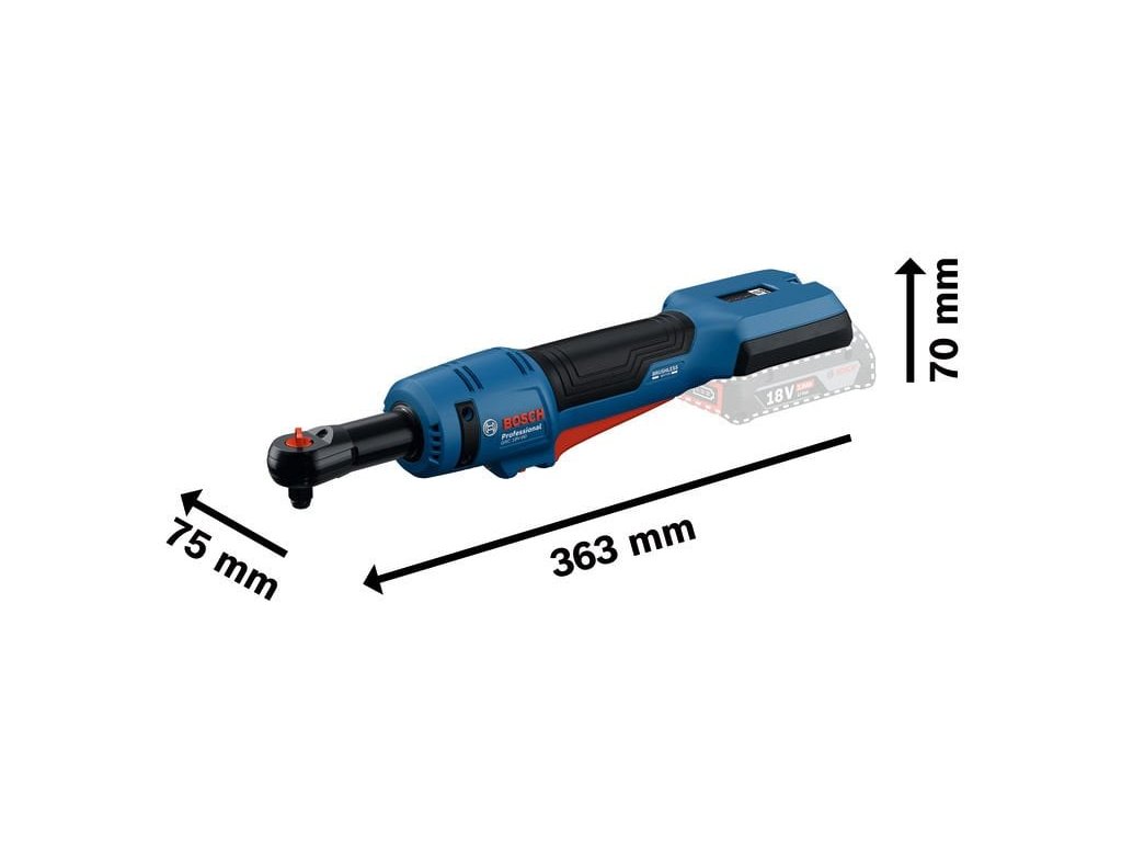 Akumulátorový ráčňový kľúč Bosch GRC 18V-60 Bosch GRC 18V-60 je extrémne výkonný ráčňový kľúč určený na jednoduchú manipuláciu v stiesnených a ťažko prístupných priestoroch. Vďaka kompaktnej konštrukcii a vysokému výkonu je ideálnou voľbou pre automechanikov a kovoobrábačov. Kľúčové vlastnosti Vynikajúci výkon: Tento bezuhlíkový momentový kľúč s motorom poskytuje maximálny krútiaci moment 60 Nm a dosahuje rýchlosť 400 otáčok za minútu, čím poskytuje vynikajúci výkon pri práci so skrutkami M5 až M12. Kompaktný dizajn: Vďaka dlhej hlave a kompaktnému telu sa ľahko dostanete aj do najťažšie prístupných miest, kde by ste s iným náradím nemali šancu. Presné ovládanie: Vďaka trom režimom rýchlosti a pohodlnej lopatkovej spúšti môžete ľahko nastaviť úroveň výkonu podľa aktuálnej potreby a zabrániť poškodeniu obrobku. Bezpečnostné funkcie. Elektronická ochrana článkov (ECP) vypne náradie v prípade prehriatia akumulátora, čím predĺži jeho životnosť. Technické parametre Napätie batérie: 18 V Maximálny krútiaci moment: 60 Nm Hmotnosť bez akumulátora: 0,9 kg Hladina hluku: 81 dB(A) Rozmery: 363 x 75 x 70 mmDodatočné parametre