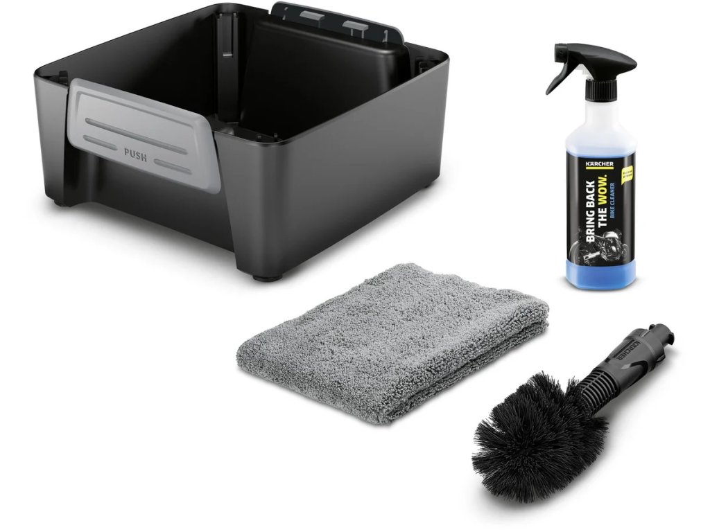 S optimálne zvoleným príslušenstvom Bike box môžete dôkladne a šetrne vyčistiť svoje bicykle a vybavenie. Univerzálny kartáč s mäkkými štetinami sa dá pripojiť k pištoli a odstráni aj silne priľnuté nečistoty. Pomocou čističa uvolníte typické nečistoty na bicykli a ochránite jeho citlivé vybavenie. A pomocou kvalitnej utierky z mikrovlákna môžete potom čistené predmety pred uložením vysušiť. Na uskladnenie príslušenstva môžete k tlakovému čističu pripevniť aj dodávaný box. Box na príslušenstvo Dá sa pripevniť na spodnú časť, aby ste všetko bezpečne uložili. Univerzálny kartáč Odstraňuje aj odolné nečistoty Čistič bicyklov Na optimálne čistenie bicyklov a vybavenia. Vysokokvalitné mikrovlákno Na sušenie vyčistených predmetov pred ich uskladnením. Technické údaje Textilné vláknové kompozity 80% polyester, 20% polyamid Hmotnosť (kg) 1,2 Hmotnosť vrátane obalu (kg) 1,3 Rozmery (dx š xv) (mm) 229 x 221 x 108 Vybavenie Úložný box Univerzálny kartáč Utierka z mikrovlákna KOMPATIBILNÉ ZARIADENIA Aktuálne produkty OC 3 OC 3 Adventure Box OC 3 Bike Box OC 3 Pet Box OC 3 Plus OC 3 Plus Auto Produkty, ktoré sa už nevyrábajú OC 3 OC 3 Adventure Box OC 3 Box na kolo Box na domáce zvieratá OC 3Dodatočné parametre
