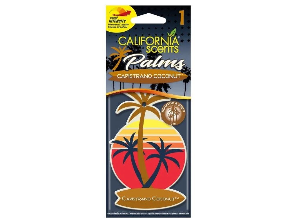 Závesná papierová vôňa - palma California Scents Palm Capistrano Coconut s osviežujúcou vôňou kokosu, ktorá prevonia interiér vášho auta, bytu, kancelárie alebo skrine.
